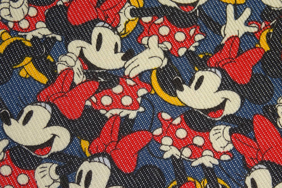 デニム調生地を利用したミニーマウス柄のマスクケースとなります。
