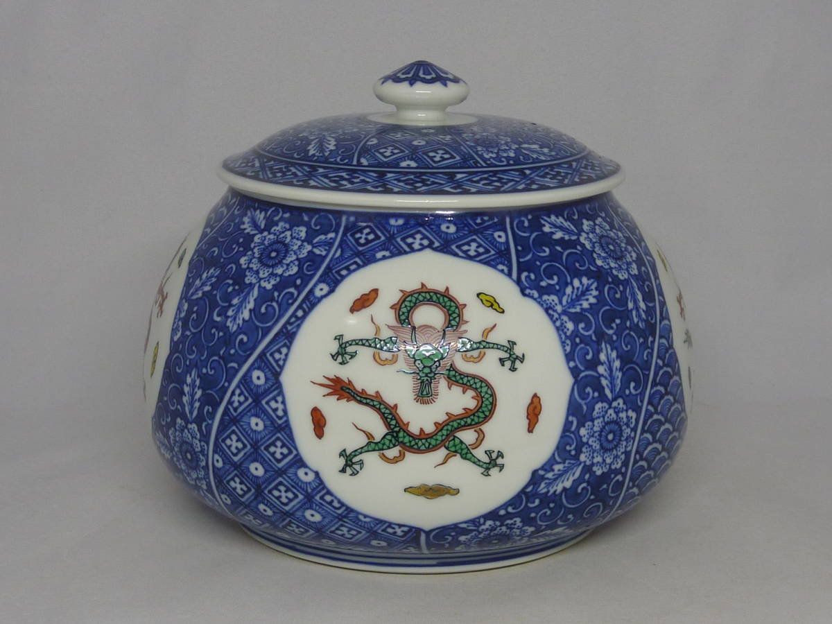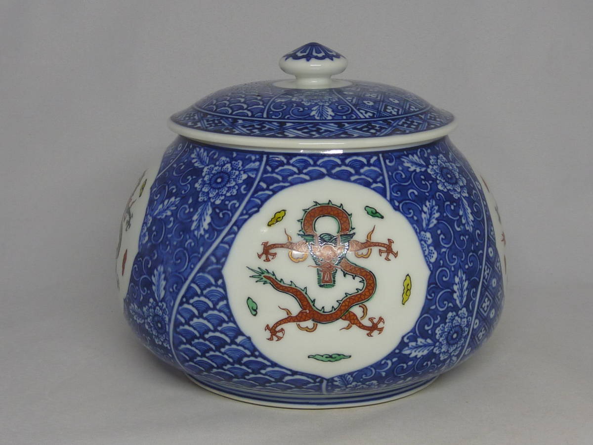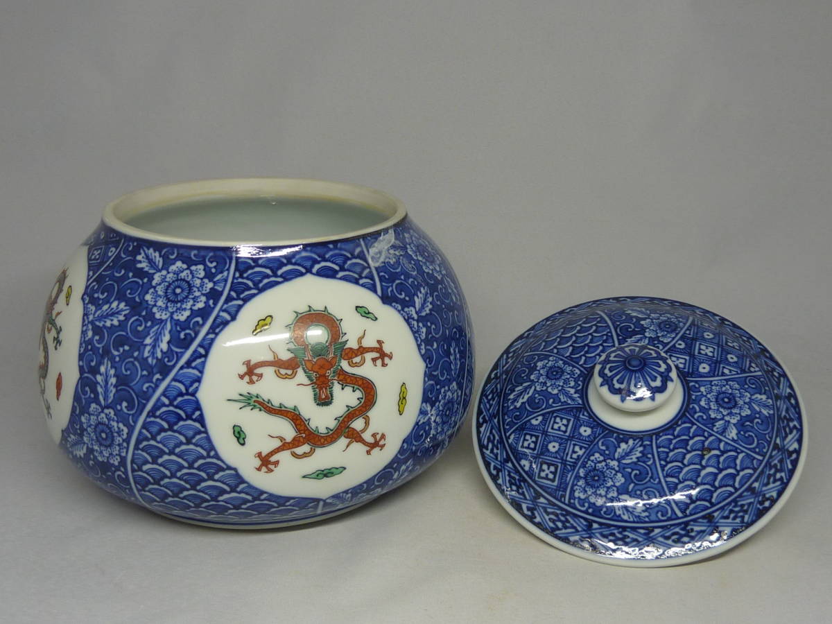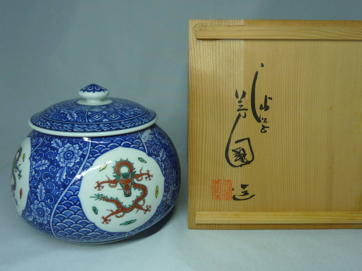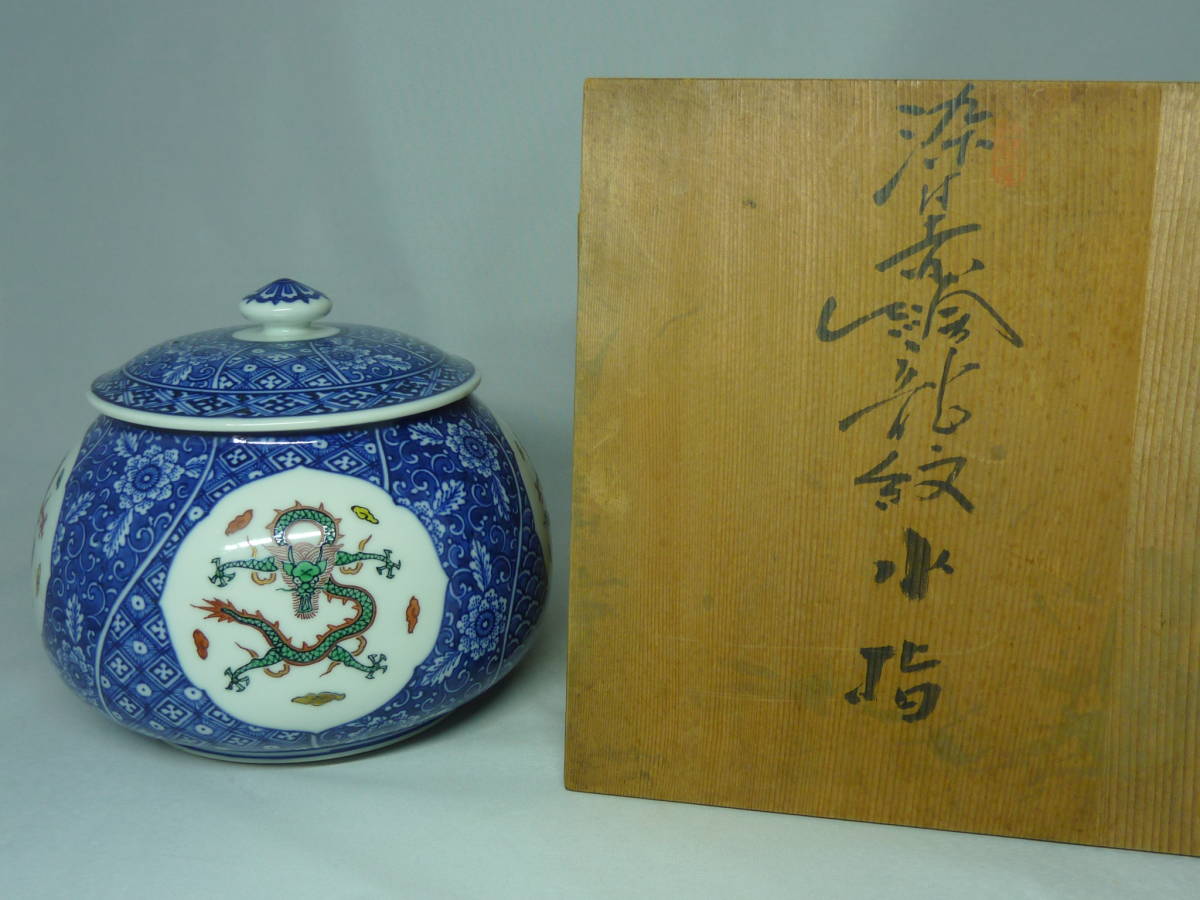 期間限定!◎◎利休kura茶道具RiQ蔵◎◎ 水指 / 芳国作 染付赤絵龍紋 水指 渋草焼 岐阜県飛騨 / 共箱【骨董・美品】