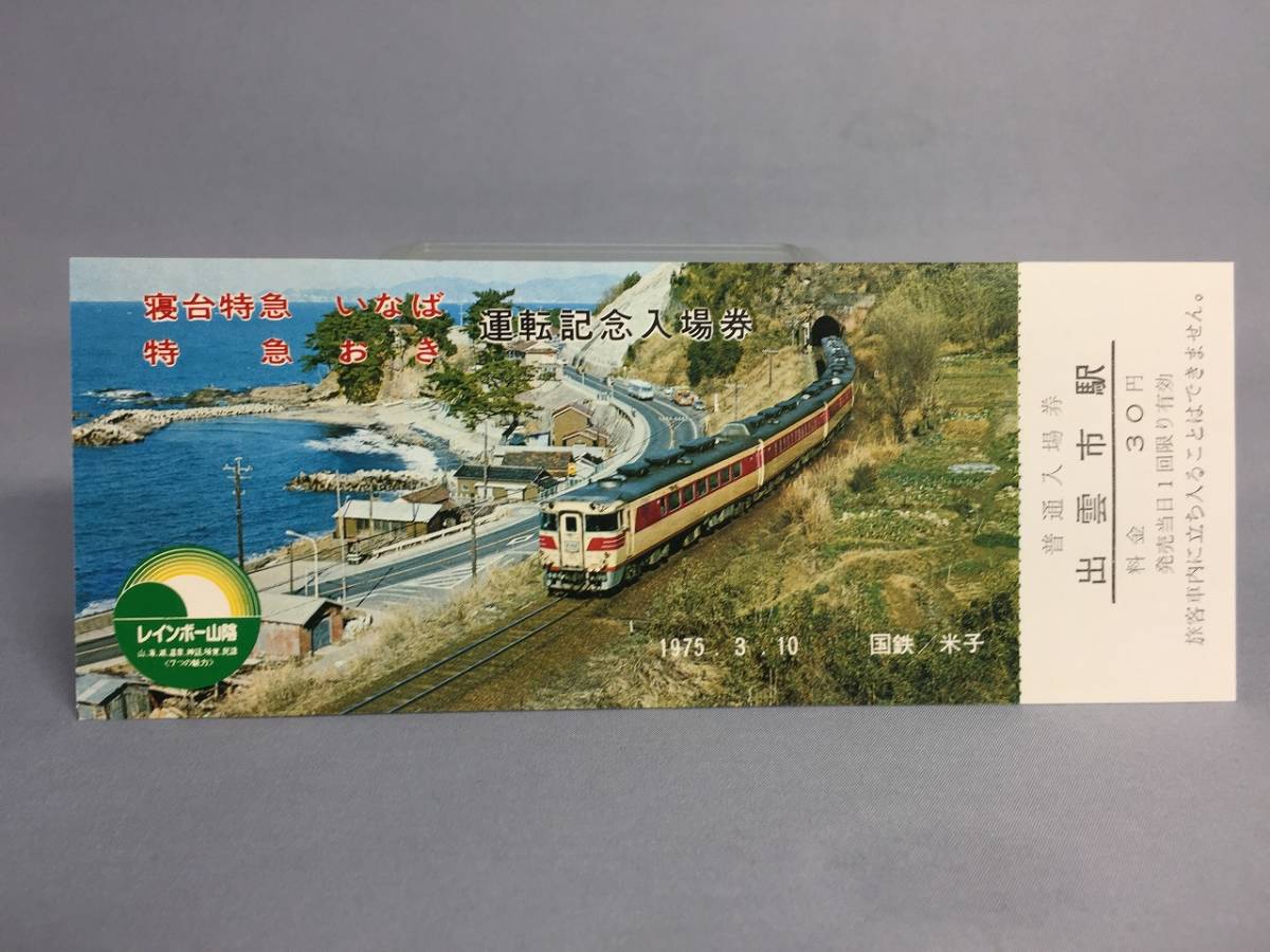 寝台特急いなば・特急おき運転記念入場券 昭和50年 出雲市駅発行 【K9-39】