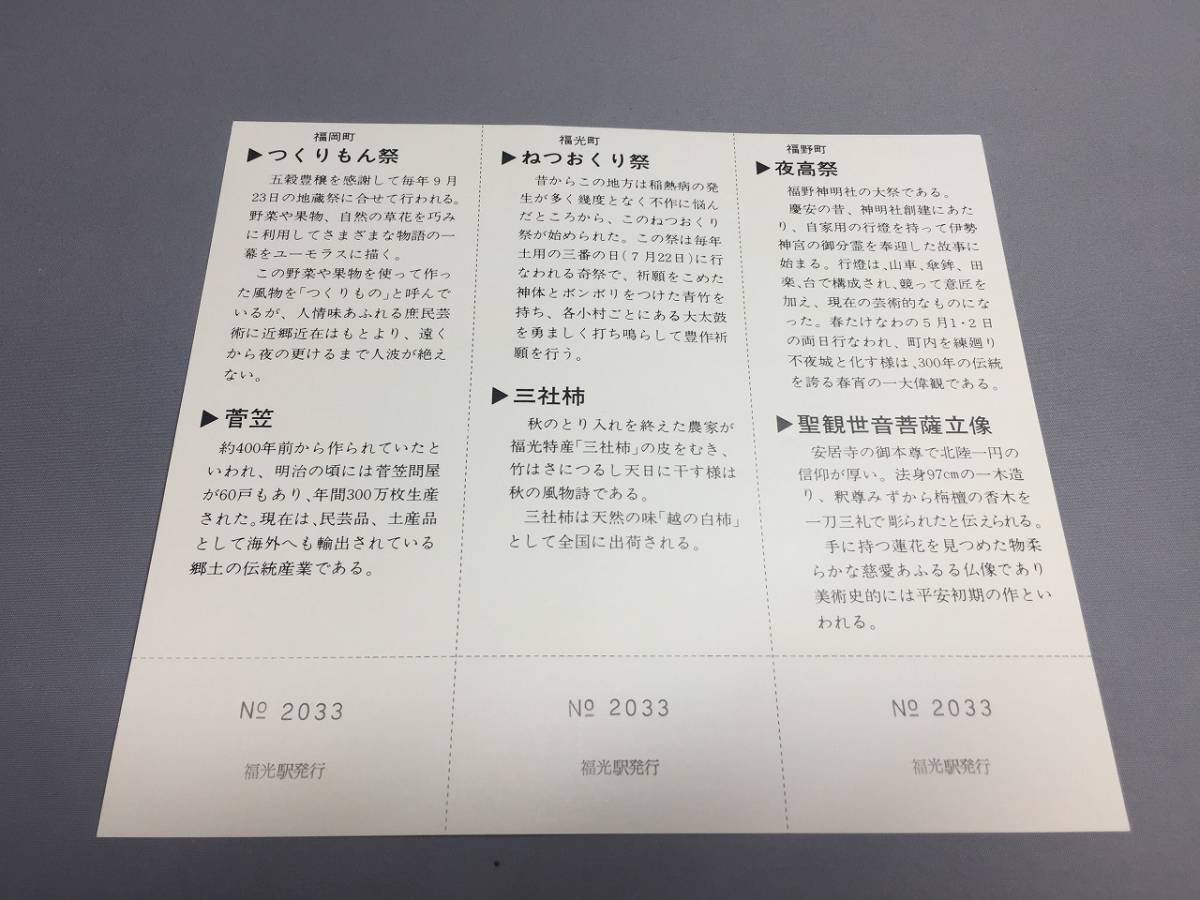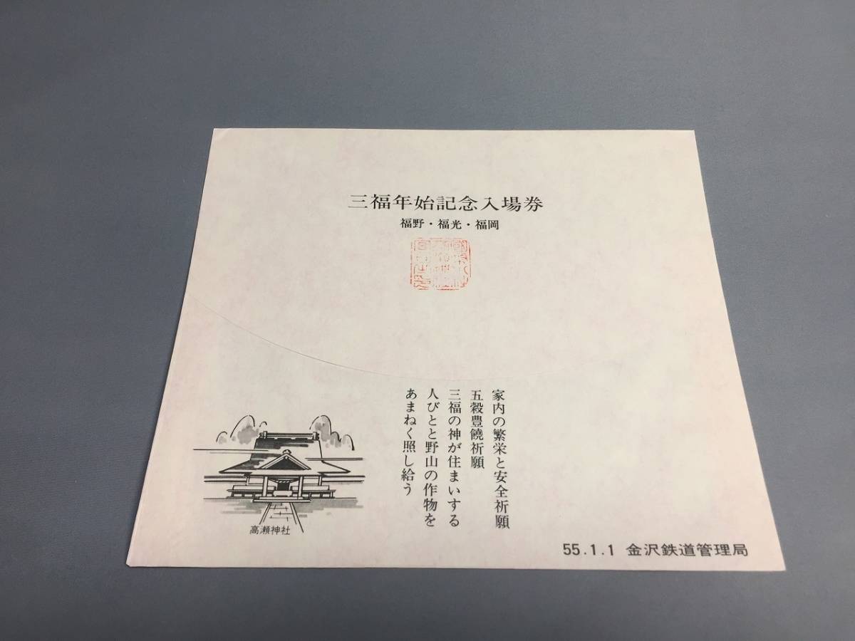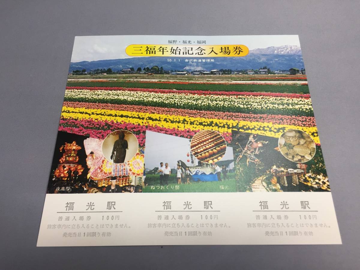 国鉄・金沢鉄道管理局 昭和55年1月1日 三福年始記念入場券(福野・福光・福岡)3枚 【K17-001】