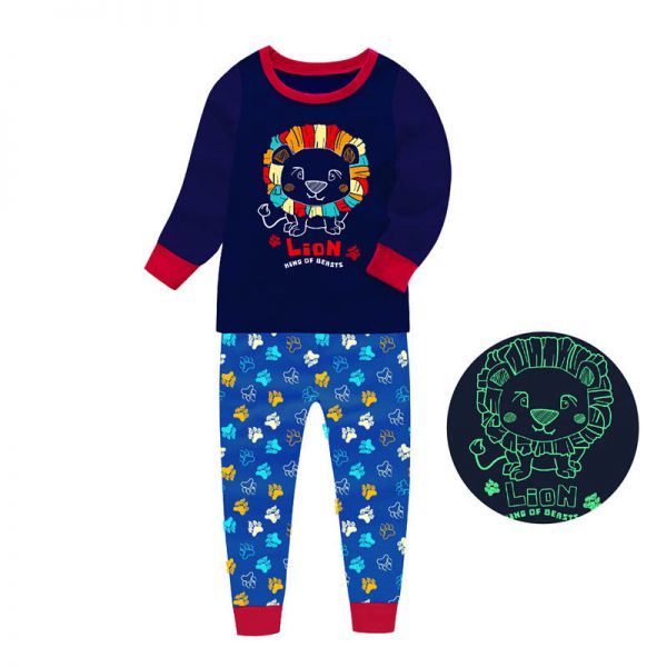 ★光る!ライオンプリント 長袖春秋キッズパジャマB0225LL4T 110cmルームウェア★