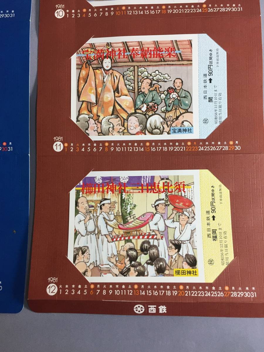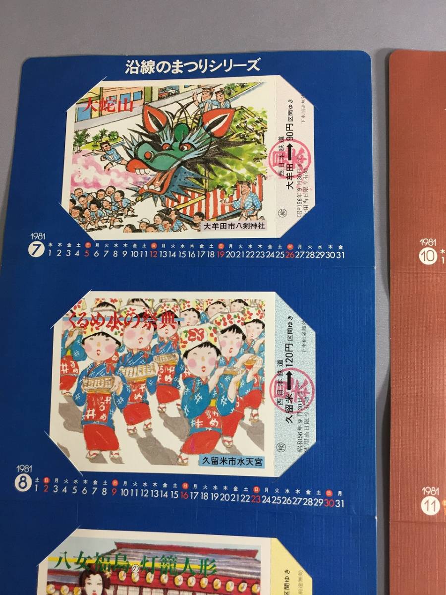 西日本鉄道 1981年 沿線のまつりシリーズ(7~9月)(10~12月)乗車券  カレンダー型乗車券6枚 【外-Y05-2068】