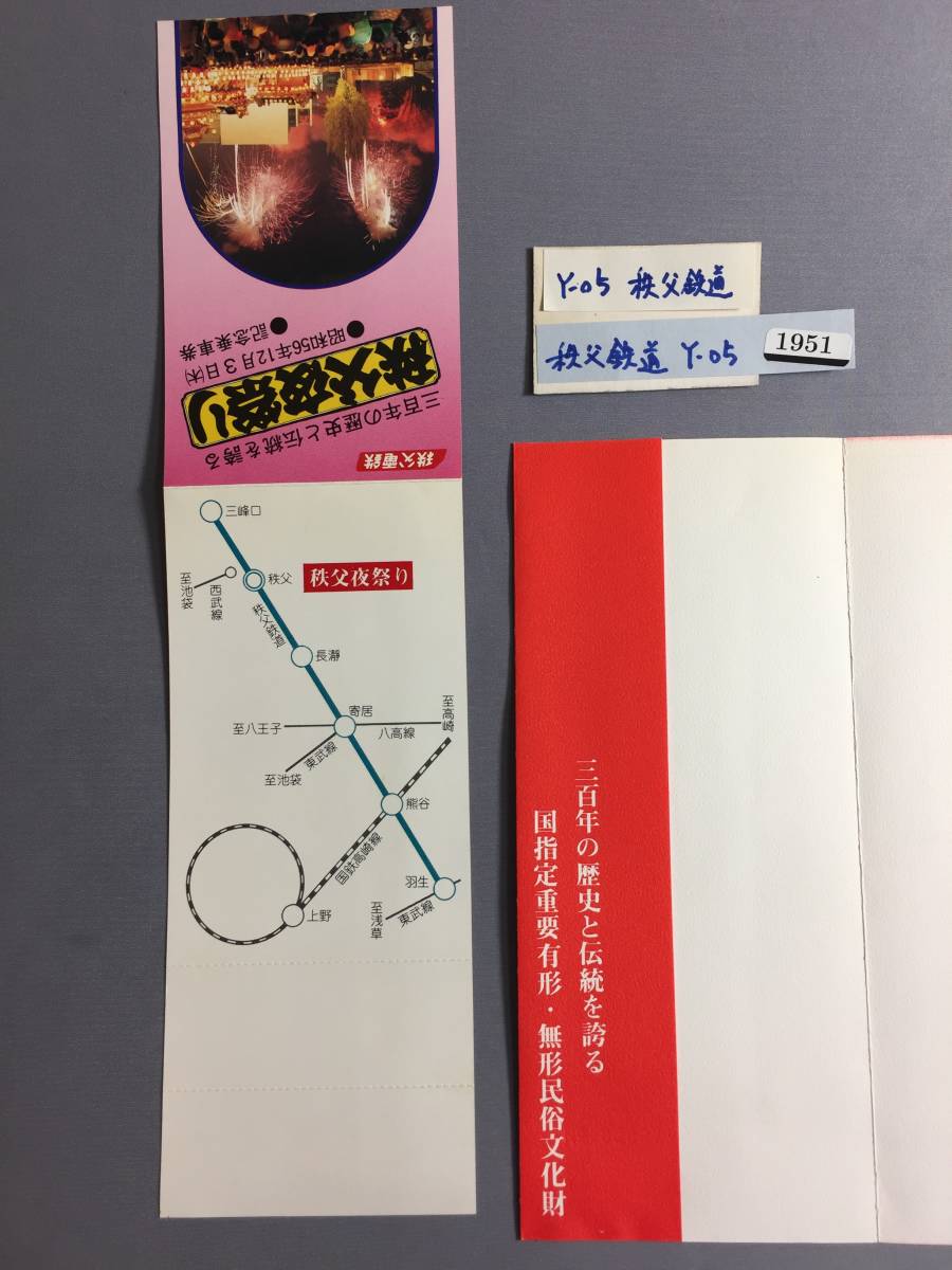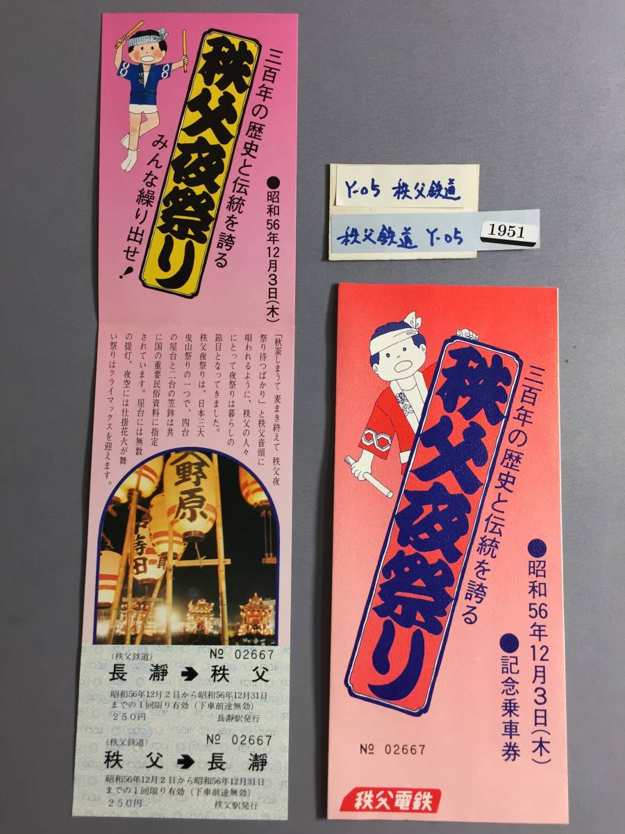 秩父電鉄 昭和56年12月3日(木) 秩父夜祭り記念乗車券(三百年の歴史と伝統を誇る) 記念往復乗車券1枚 【Y05-1951】