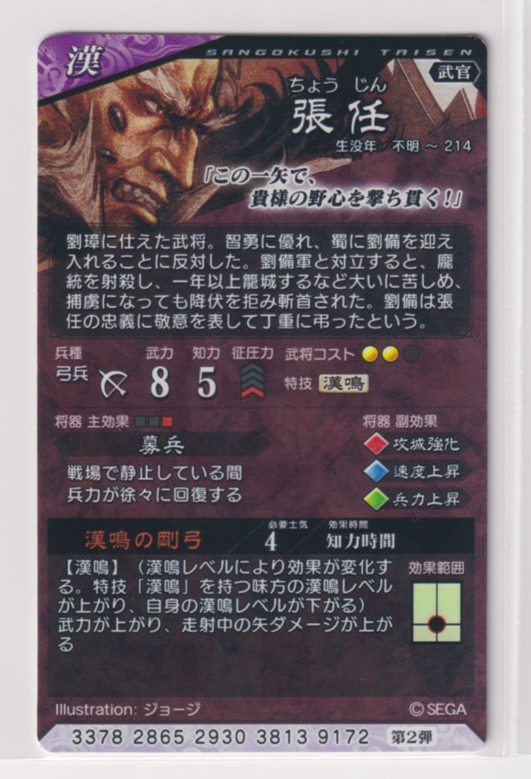 三国志大戦4 漢 2弾 R 張任 漢鳴の剛弓 募兵 コレクション用