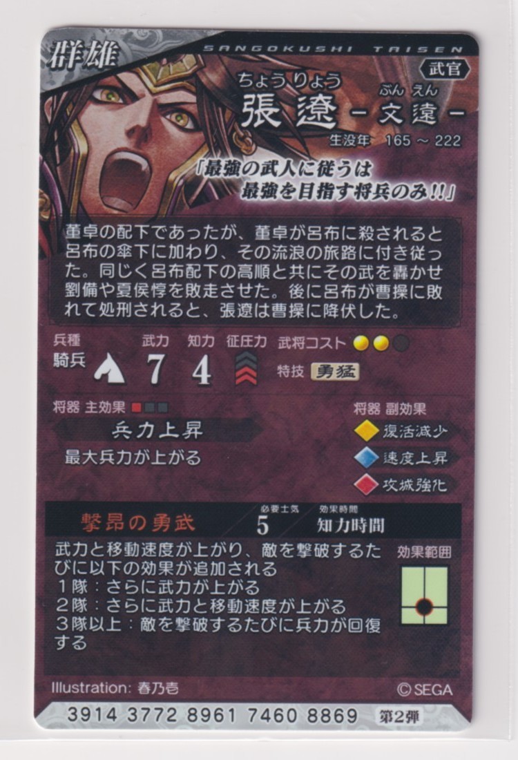 三国志大戦4 群 2弾 R 張遼 撃昂の勇武 兵力上昇 コレクション用
