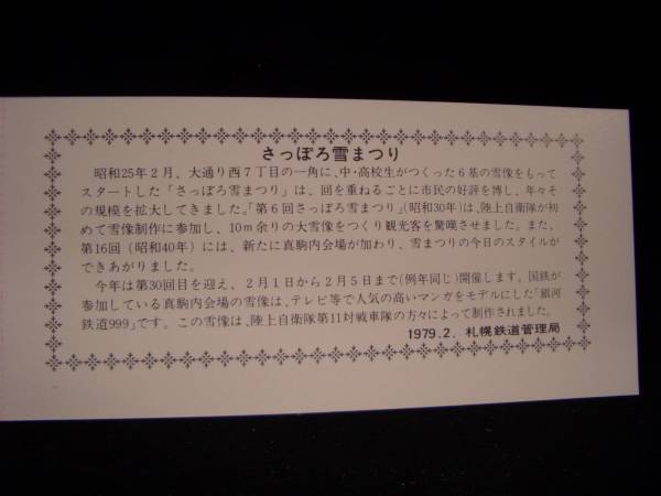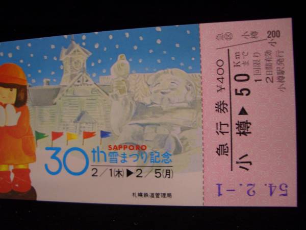| ■【国鉄/札幌】SAPPORO30th雪まつり記念急行券■s54 | |