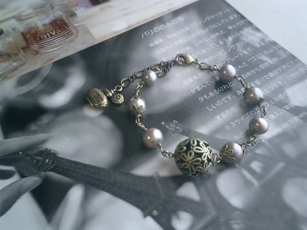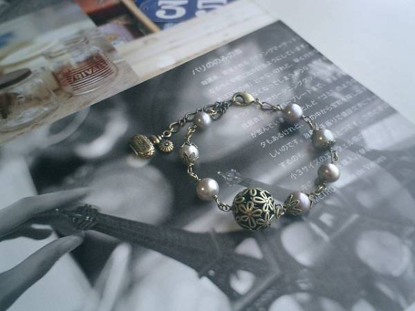 秋色コレクション・・シリーズです♪アンティーク仕様・・淡水パールとメタルチャームのロマンチックなブレスレットです♪シックなシルバーパープルの淡水パールは8ミリ位のポテトです♪15ミリ位の花柄のメタルチャームを合わせてひっそりロマンチックしています♪長さは全長23センチ位で調節自由です♪キュートなデザインなのでいろいろなシーンで楽しんでいただけます♪お揃いのネックレスも出品しています♪シンプルで長く着けていただけるデザインを考えて作りました♪ハンドメイドをご理解頂いてノークレーム、ノーリターンでお願いします