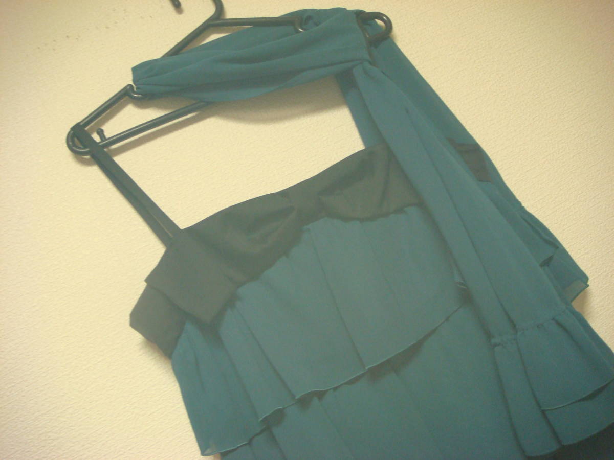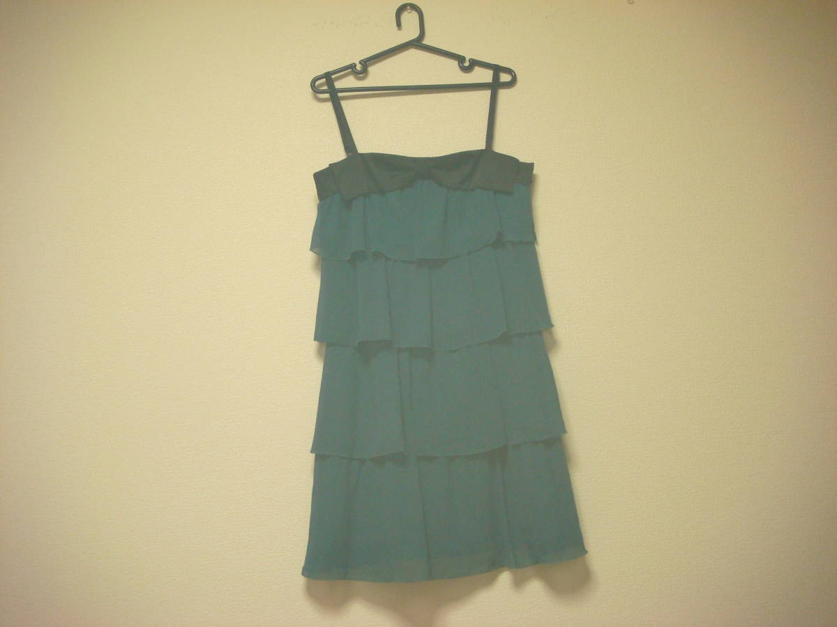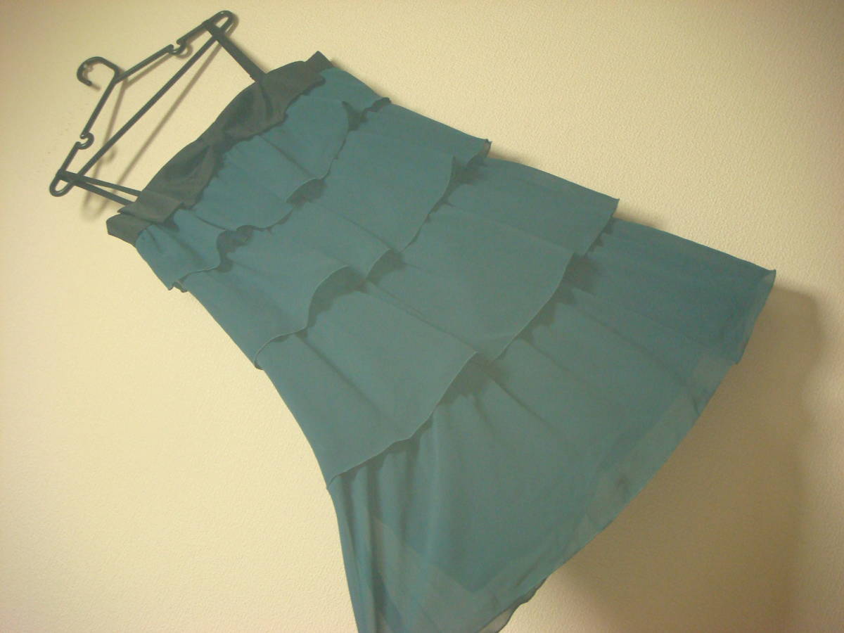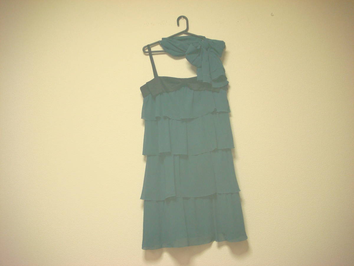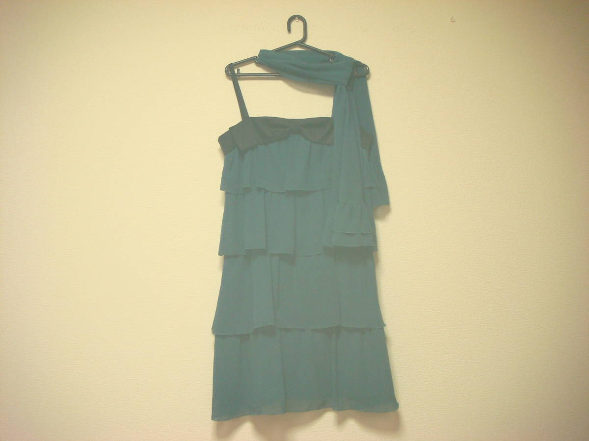 フェルゥ フリルストール付き おリボンデザイン ティアード ワンピース 二次会ドレス グリーン 美品