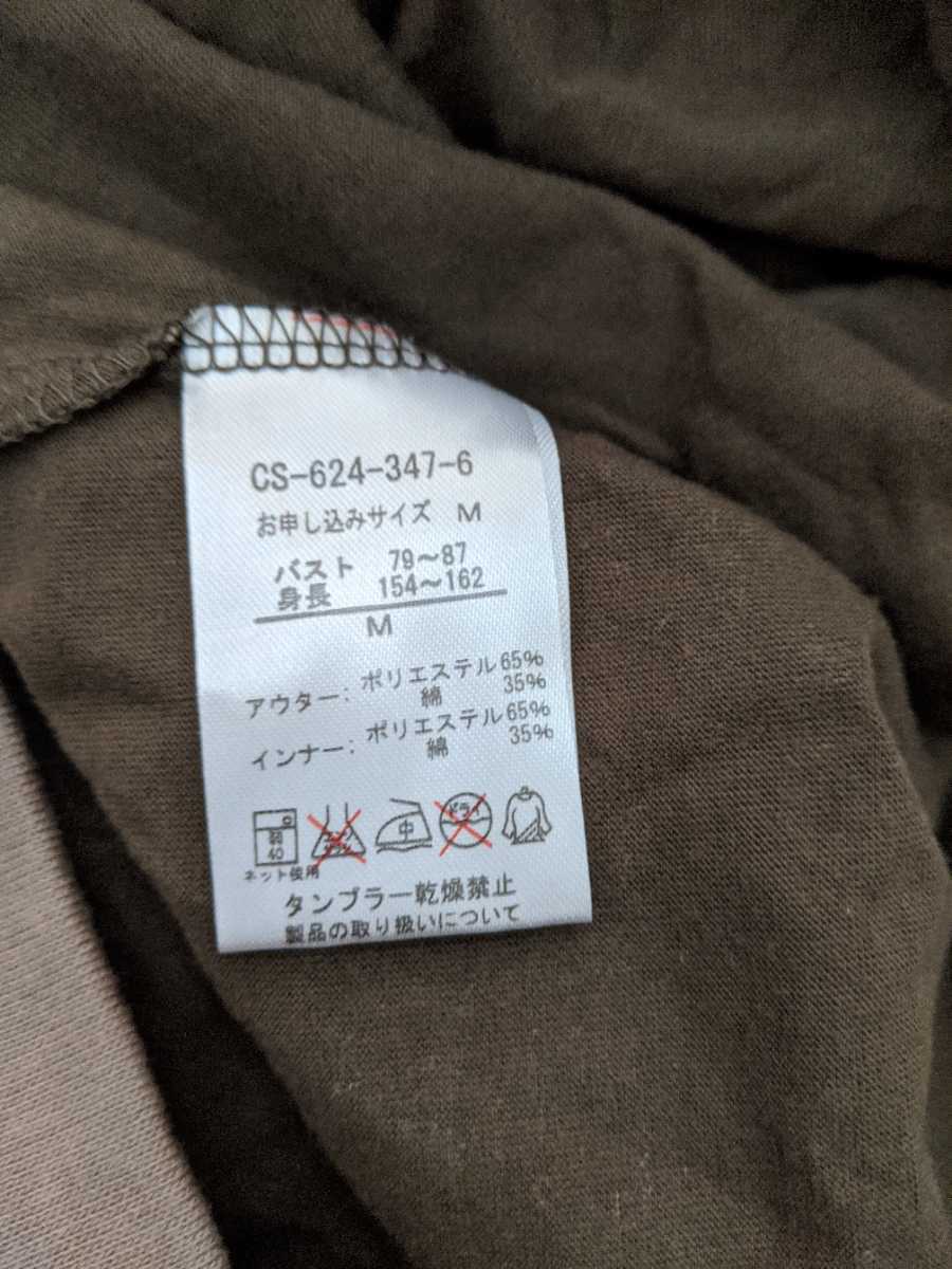 サイズMのフェリシモのUSED品です。7分袖くらいです。中はタンクトップで裾の方がつながっています。