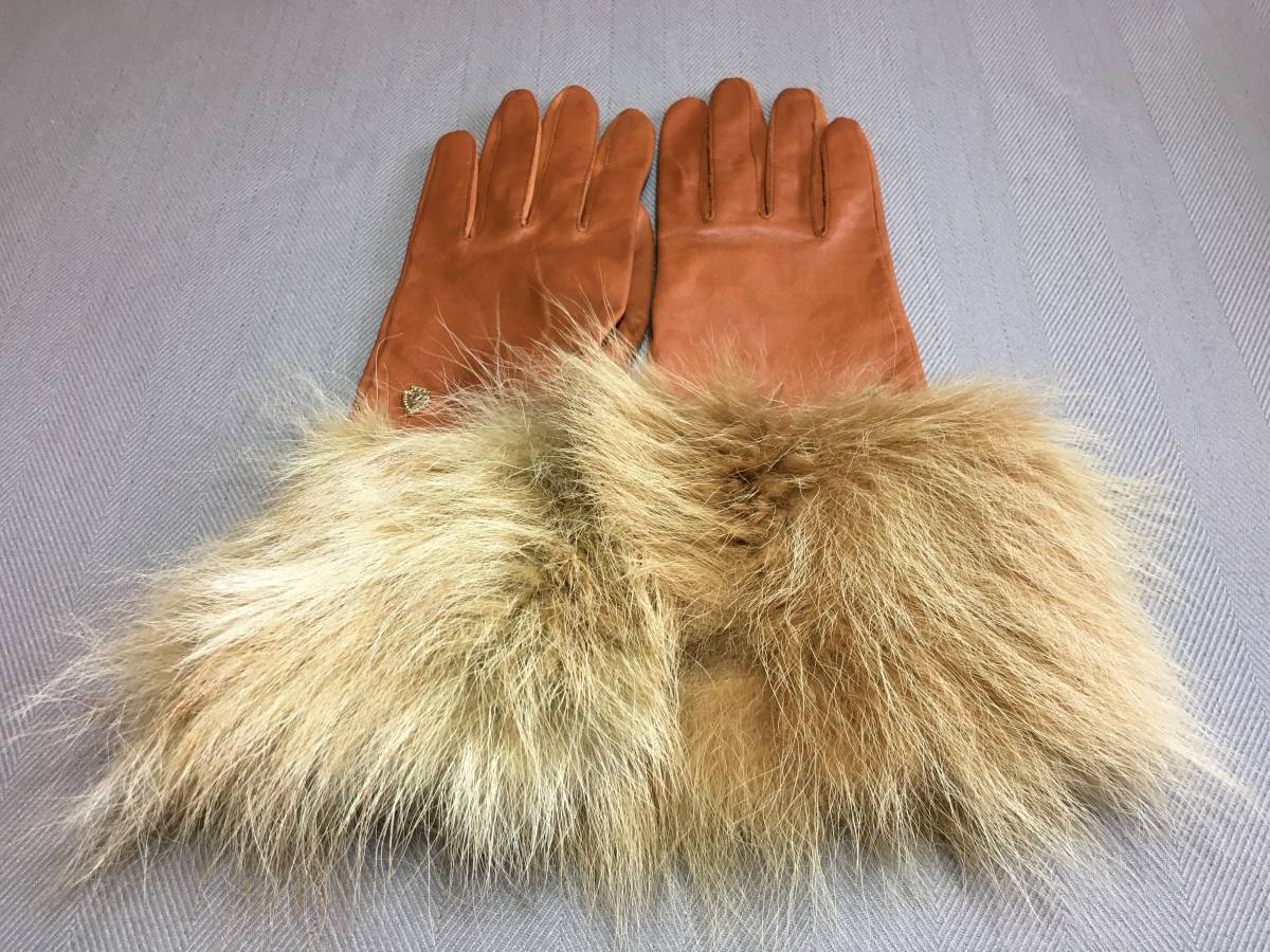 新品 ミュベール レザー ファー 手袋 本革 ブラウン コヨーテ リアルファー グローブ MUVEIL