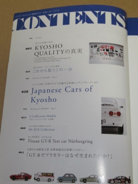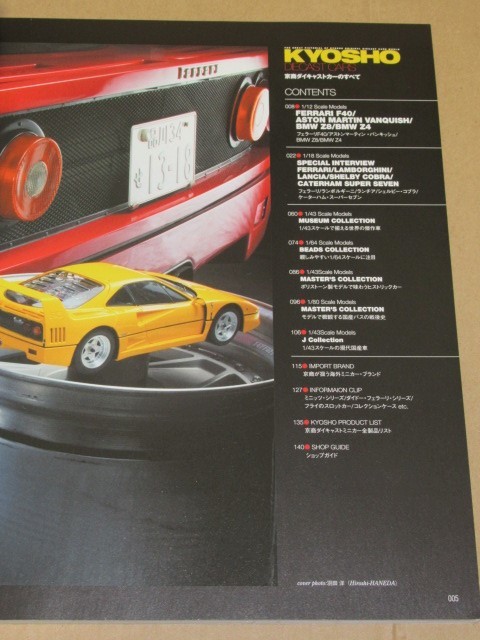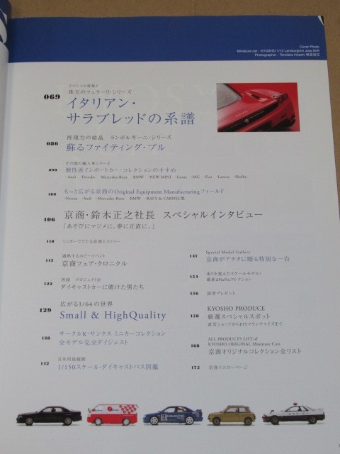 巻頭企画は「スーパーカーが僕のすべてだった頃」。1970年代後半のスーパーカーブームにファンを夢中にさせたクルマFerrari 365GT4/BB、Lamborghini Countach、Lotus Europe、Lancia Stratos、Lamborghini Jota、BMW 2002 Turboの6台をクローズアップし、それぞれの実車の魅力をいのうえ・こーいち氏が語っていきます。当時の興奮がよみがえってくることでしょう。また、今回のテーマは「京商ダイキャストカーモデル」ということで、日本のミニカーメーカーとしてのトップブランドである京商が、これまで13年にわたって出してきたモデルを詳細に解説していきます。また誌上限定販売モデルやレアモデルギャラリー、オールリストなど見ごたえも充分!
