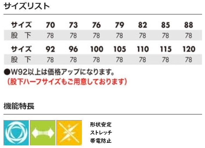 「プレミアム裏綿」。ワンランク上のベーシックユニフォーム。 ★色:58ダークグリーン ★サイズ:ウエスト100cm、股下78cm ★素材:プレミアム裏綿(導電繊維混入) ★混率:ポリエステル90% 綿10% ★特徴:隠しポケット ツータック | |