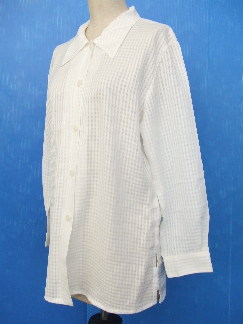 「BELLE MAISON」の長袖ブラウスは白に格子柄の爽やかな一枚です。