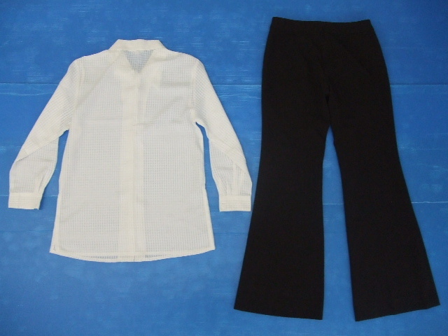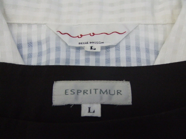 レディースLサイズ2点セット ①BELLE MAISON/長袖ブラウス/白・格子柄 ②ESPRITMUR/フレアパンツ/茶系