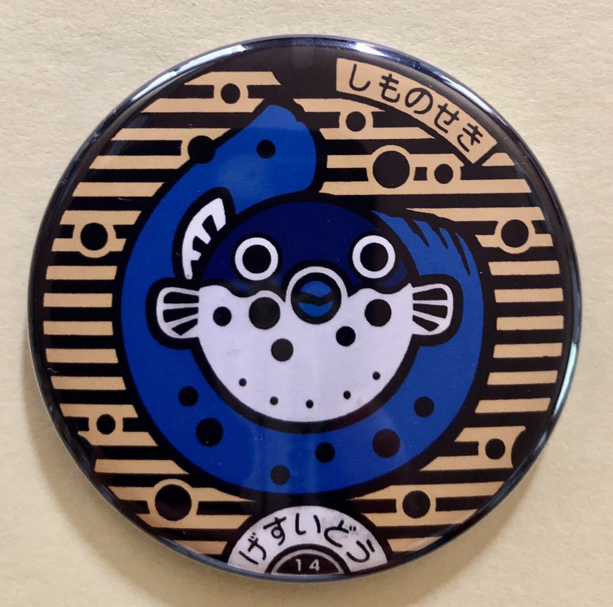 実際に下関市に設置されているマンホールを撮影して 製版し、缶バッチに仕上げました。