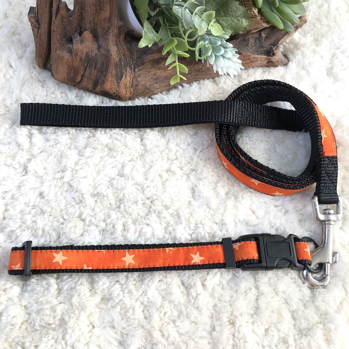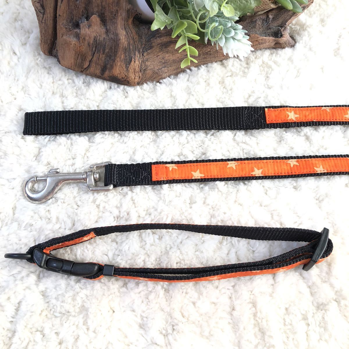 ★同梱お得★首輪&リード・中型犬・スター柄-No.36・オレンジ♪
