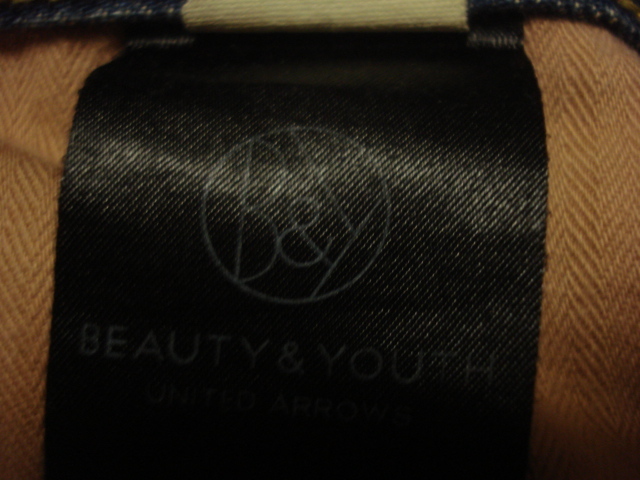 高級人気ブランド BEAUTY&YOUTH(ビューティ&ユース・ユナイテッドアローズ) ダメージ加工デニム地・高級デザインジーンズロントボタンフライ系タイプのお洒落でかっこいい廃版レアモデルです。