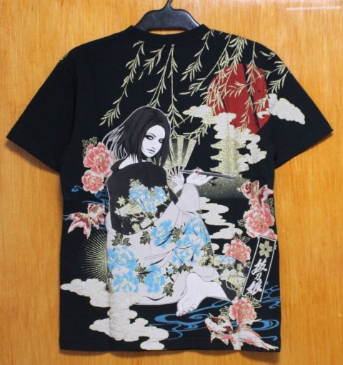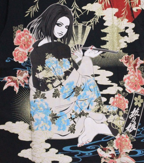 下部の英字は刺繍でその他は抜刀娘プリント半袖Tシャツです。