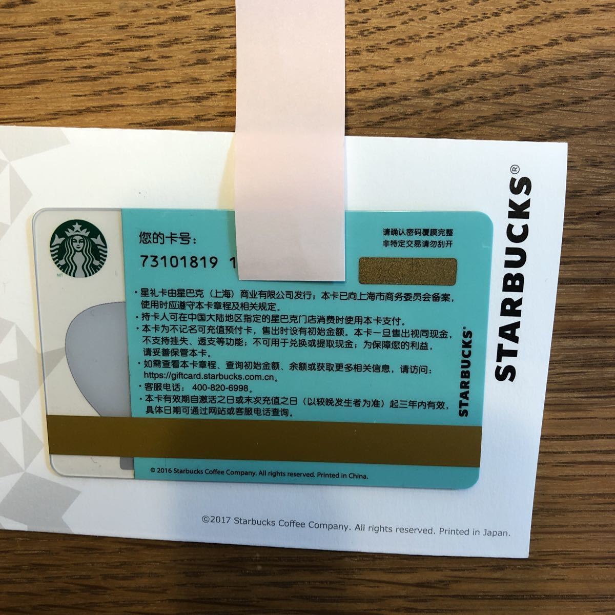 中国のスターバックスで入手した スターバックスカードの出品になります。