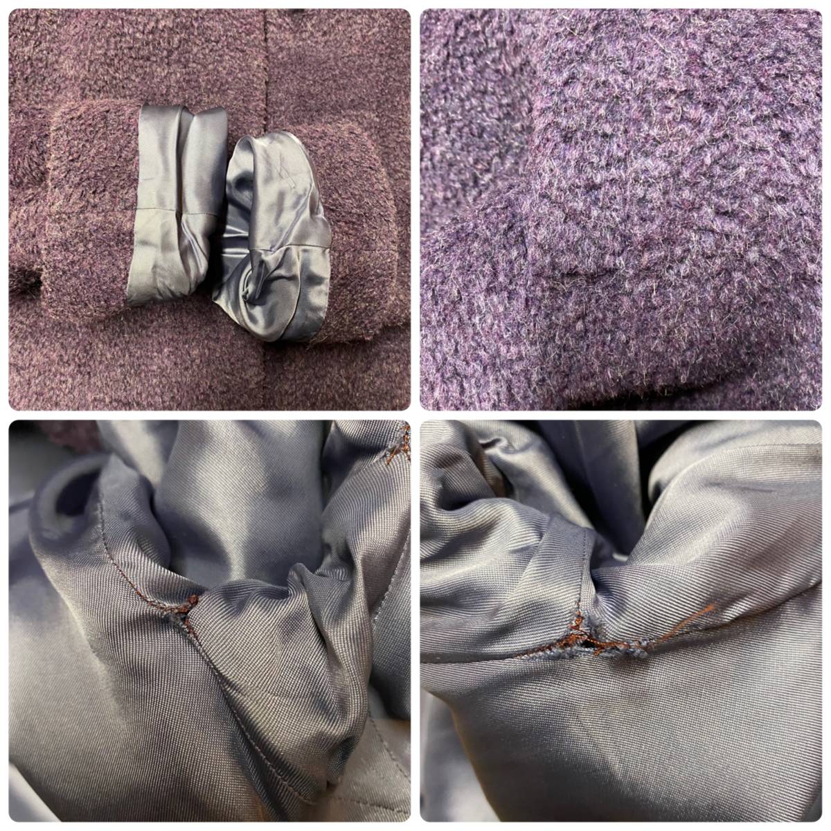 カラーはパープル、素材は表/32%・アクリル30%・ポリエステル30%・モヘヤ8%、裏/()になります。