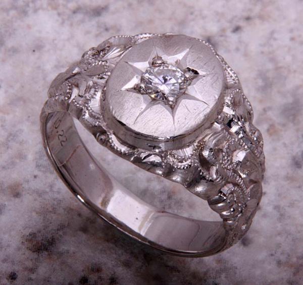 《質屋出品》Pt900★天然ダイア印台デザインリング★C-3948