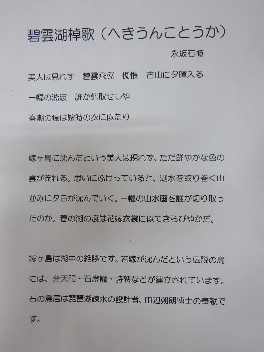 明治、大正期の漢詩人 永坂石たいの嫁ケ島伝説を詠んだ碧雲湖棹歌(へきうんことうか)