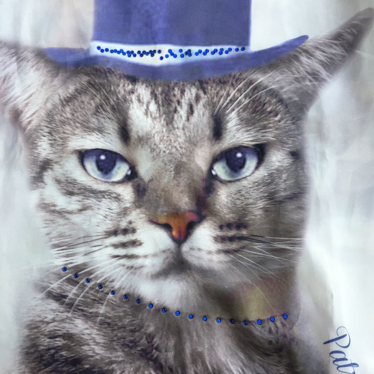 帽子や猫の首部分にラインストーンが散りばめられているのが、お洒落です。