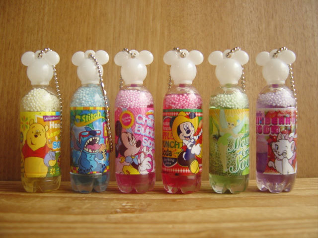 1.ミッキーマウス(アップルパンチソーダ) 2.ミニーマスス(チェリーバブルソーダ) 3.スティッチ(ブルーハワイソーダ) 4.くまのプーさん(ハニーレモン&ライムソーダ) 5.マリー(ミックスベリーソーダ) 6.ティンカー・ベル(メロンクラッシュソーダ) ◇ディズニーキャラクターのソーダが新発売!? 中のつぶつぶがまるでソーダみたい! |