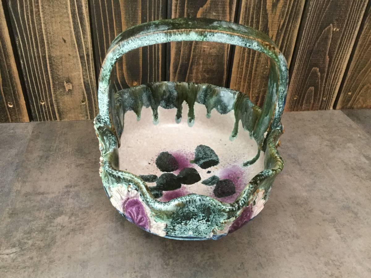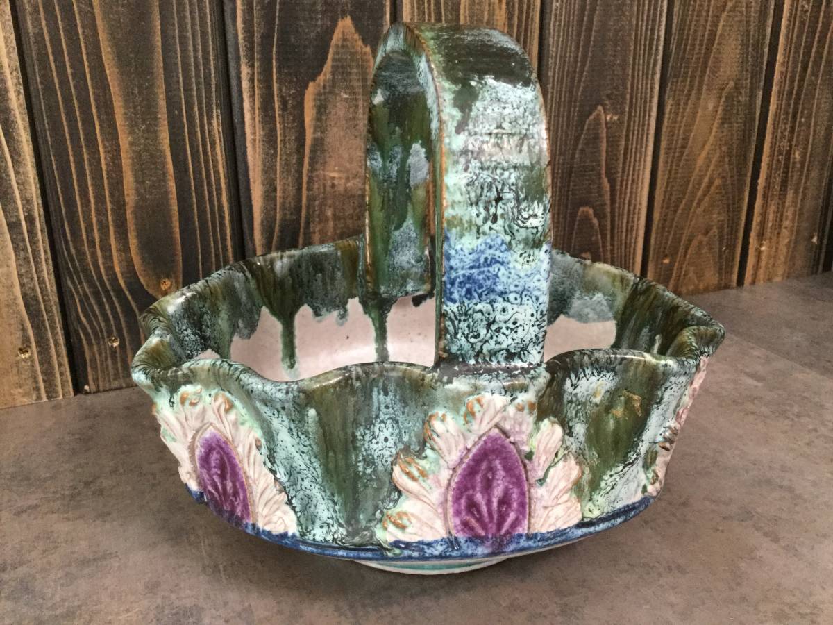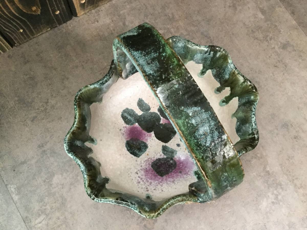 イタリア製  花器 生花 水盤 緑色系 フリル フラワーベース