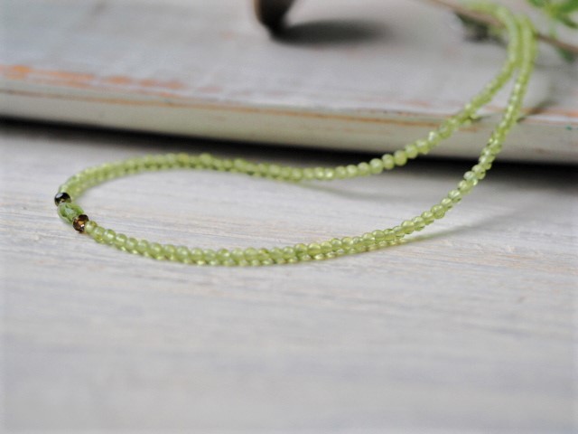 | サイズ | *ペリドット丸石サイズ:2.5mm *ペリドットボダン石サイズ:3mm×2mm *ペリドットトップ石サイズ:8mm×5mm×3mm *飾りボールサイズ:1mm *ネックレス全長:38cm |