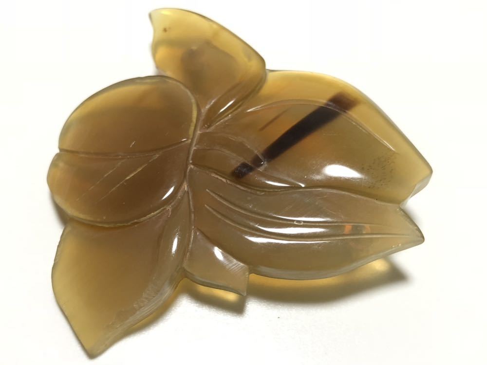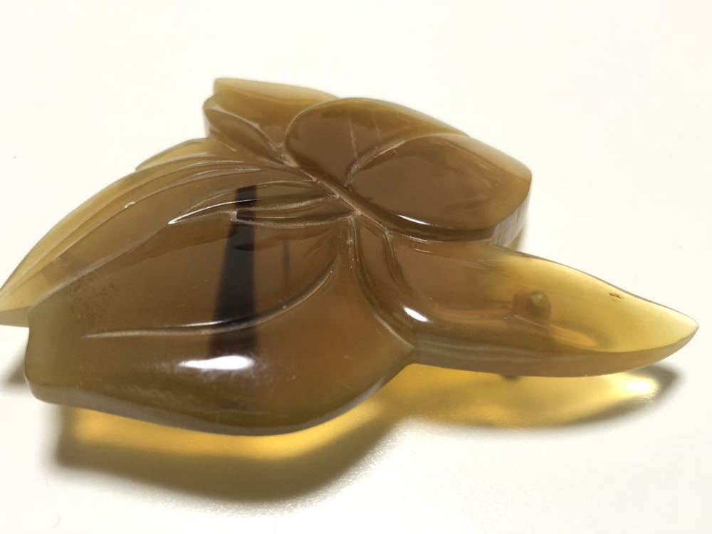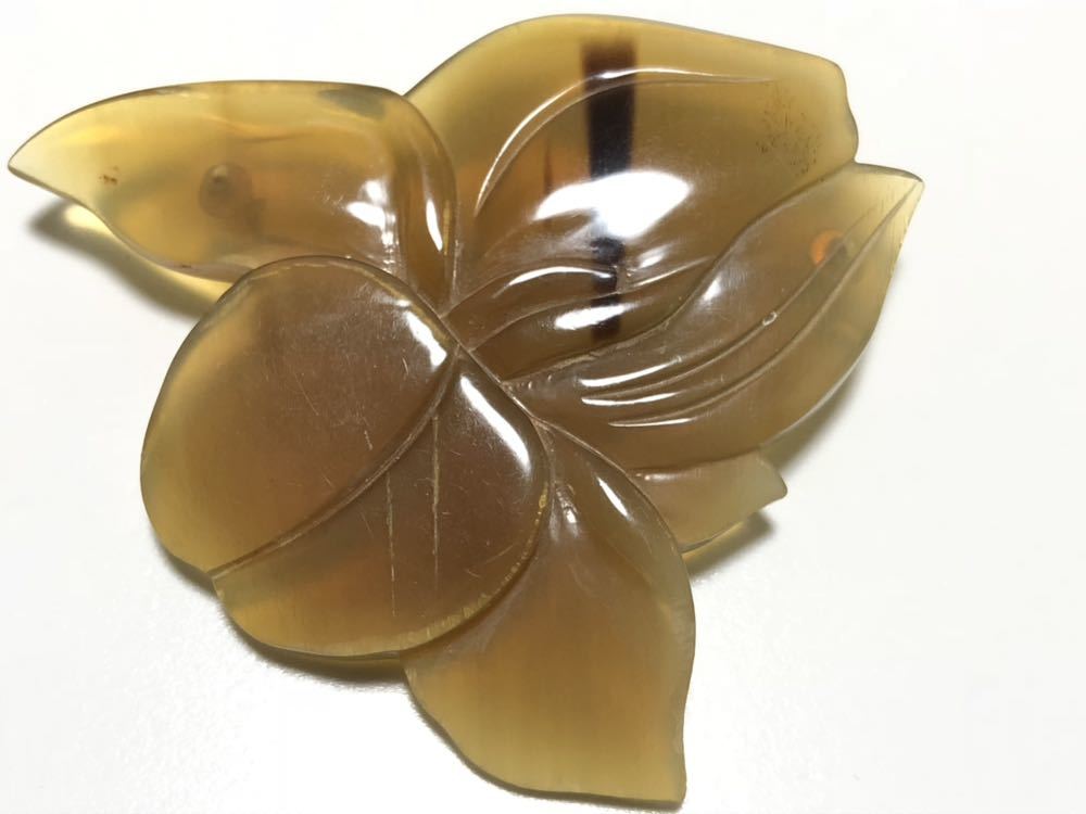本水牛を使用した、カトレアデザインのブローチです。金属部分に若干の劣化があります。