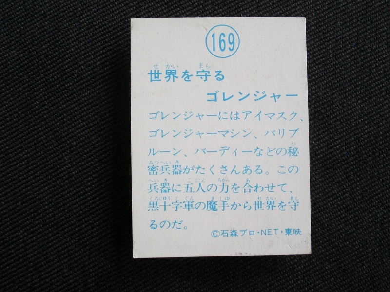 秘密戦隊ゴレンジャー ミニカード 70年代 バラ売り ・メーカー:山勝 ・1975年頃、当時の放送時に販売 ・6.6 cm x 5.0 cm ・同梱発送可能(複数落札の場合:定形、定形外郵便は、送料が変わる場合があります。) ・1-288番シリーズ ・1弾80種 001-080(タイトル違い.55.57.59.61.71.76.77,表修正.73) ・2弾32種 081-112 ・3弾64種 113-176 ・4弾48種 177-224 ・5弾32種 225-256 ・6弾32種 257-288 〓参考項目〓 ・原作石森章太郎 ・脚本上原正三 他 ・監督竹本弘一 他 ・制作テレビ朝日 ・放送期間1975年4月- 1977年3月 ・全84話 〓出演〓 ・海城剛・アカレンジャー:誠直也 ・新命明・アオレンジャー:宮内洋 ・大岩大太・キレンジャー:畠山麦 ・熊野大五郎・2代目キレンジャー:だるま二郎 ・ペギー松山・モモレンジャー:小牧りさ ・明日香健二・ミドレンジャー:伊藤幸雄 ・江戸川総司令:高原駿雄 ・陽子・007:鹿沼えり ・黒十字軍総統:安藤三男、八名信夫 ・ナレーション:田中信夫、大平透