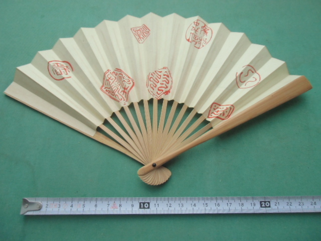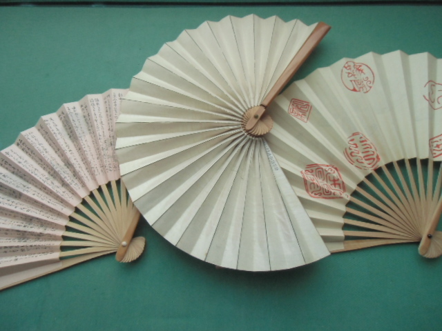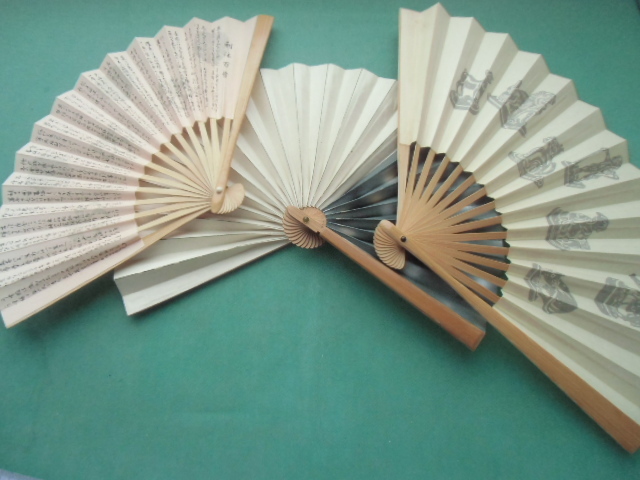 変わった扇子  3点です。     角谷商店   サイズは閉じた時、長さ約13,3センチ、広げた時最大約23.5センチ