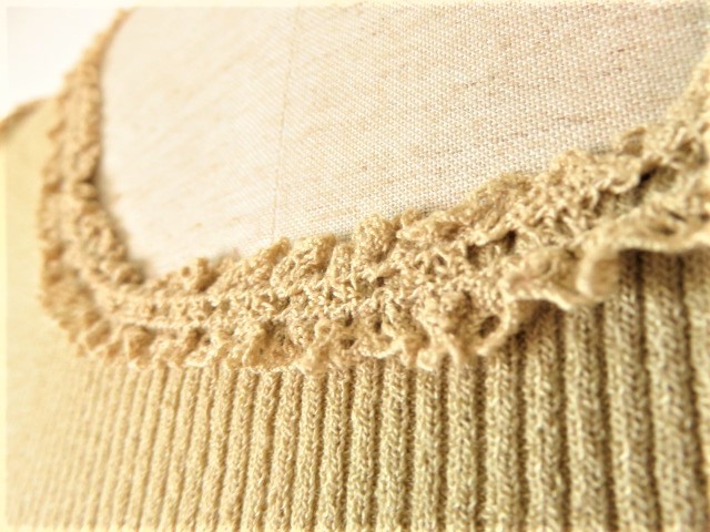 のフリルが可愛らしいお品、柔らかで気持ちの良い手触りの素材です。
