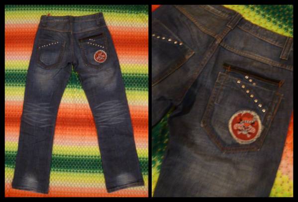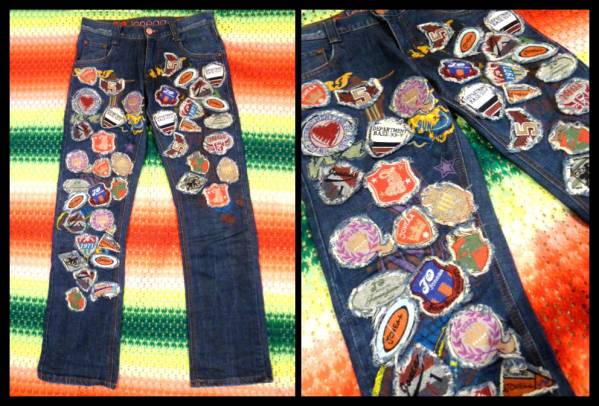 激レア 即決価格 ド派手 奇抜 ワッペン多数 デニム ジーンズ  サイズ30 パンク サイケ ヒッピー