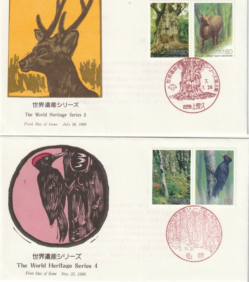 FDC 1,994-95年  第1次世界遺産シーリズ 全4集完  飯島俊一版画