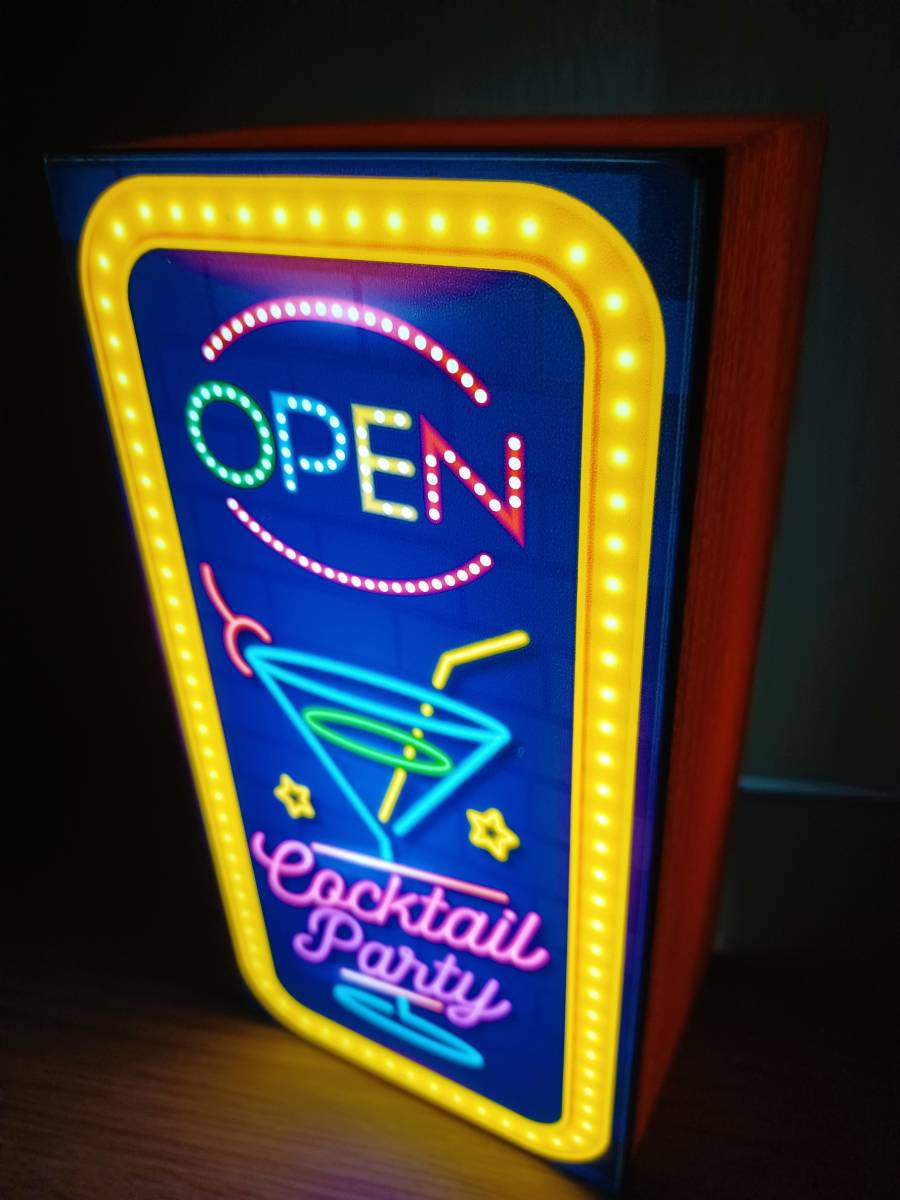 OPEN 営業中 カクテル バー クラブ パブ スナック ラウンジ ドリンク 販売促進 サイン ランプ 看板 置物 雑貨 ライトBOX 電飾看板 電光看板