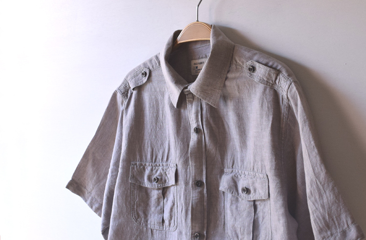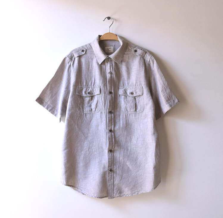 オールドネイビー リネン/コットン 半袖シャツ サファリシャツ メンズM OLD NAVY CB0418