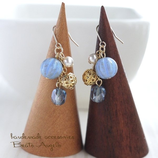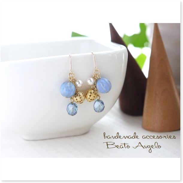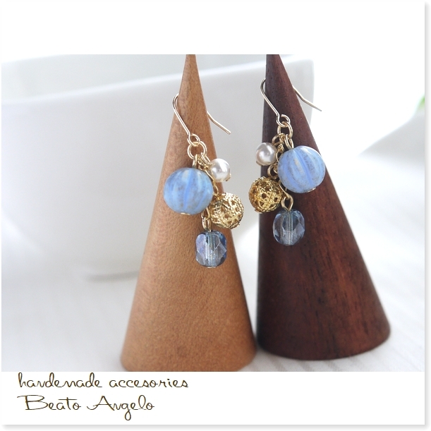 チェコメロンと透かし玉のピアス(p-019)エンジェルブルー G