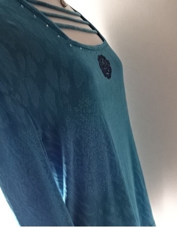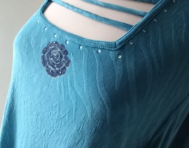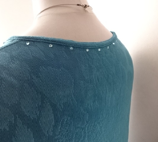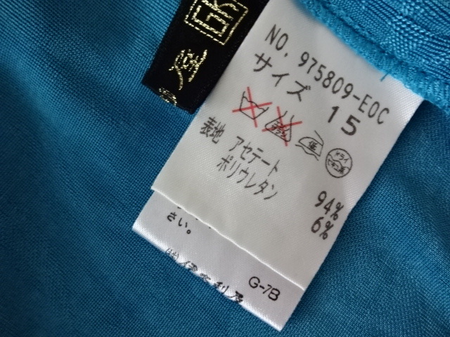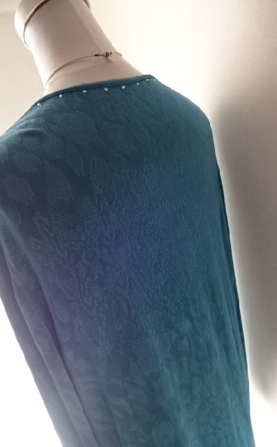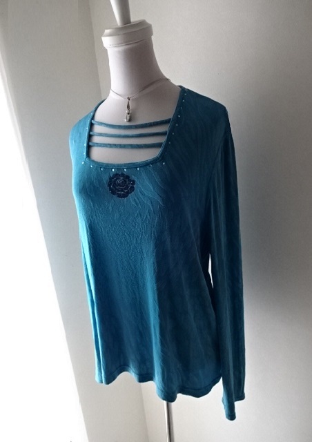 美品・伊太利屋・ブルー系・とろみ・ループ・スクエア・ネック・ラインストーン・地模様・青・大きめ・レターパックライト370円