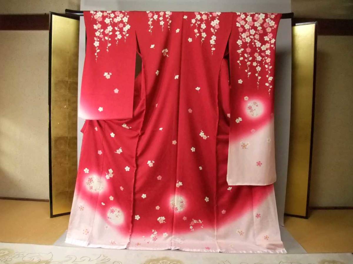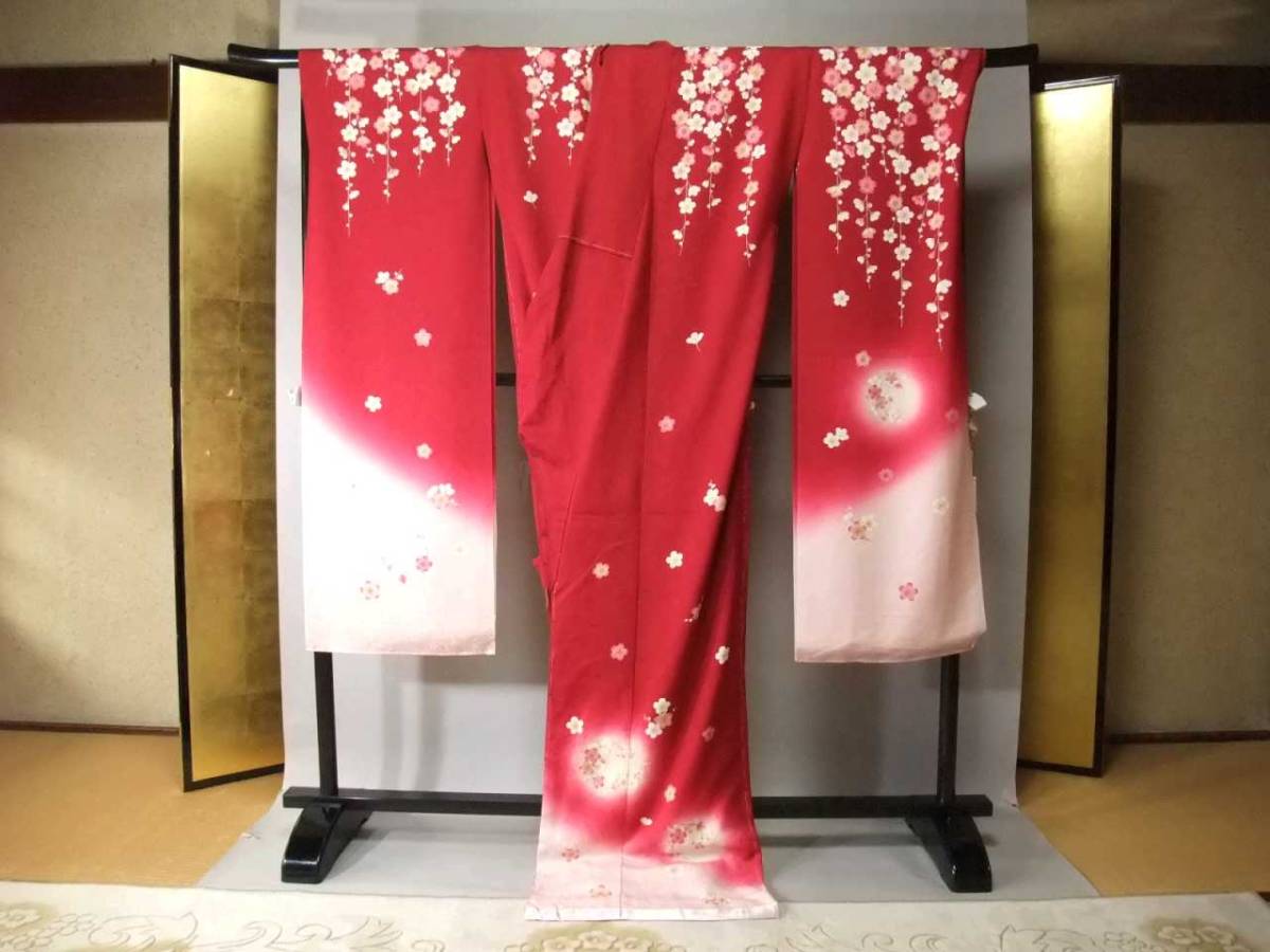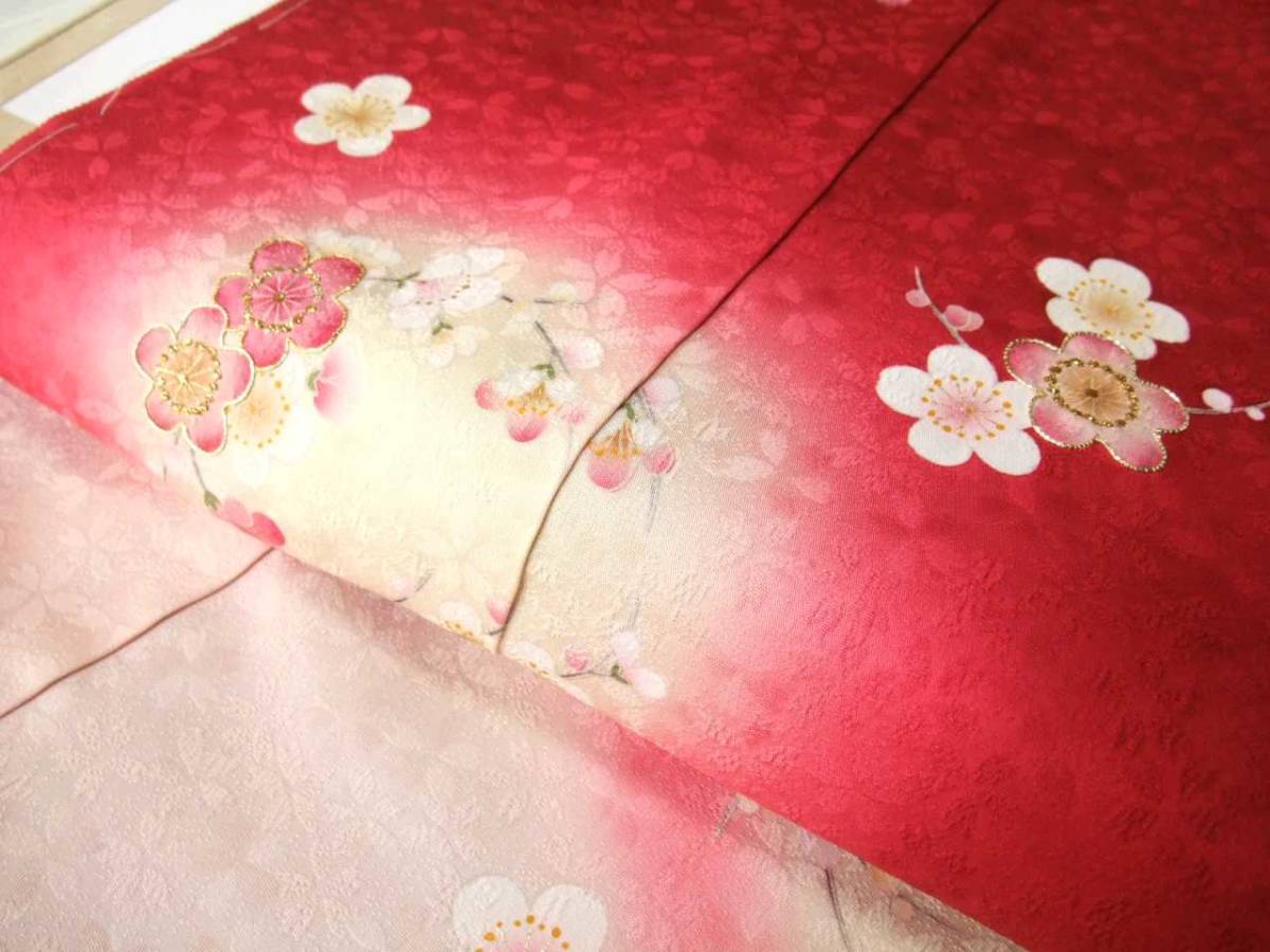 振袖 正絹 hr087 京友禅 赤色地ぼかし梅花模様 新品 送料込み