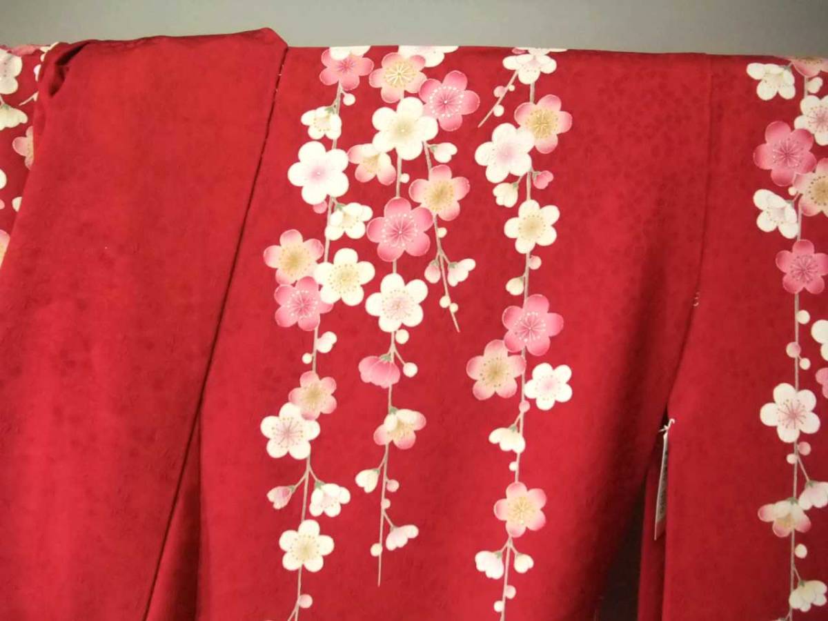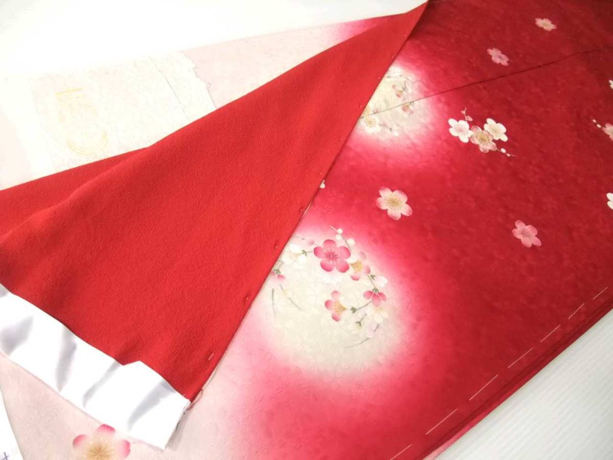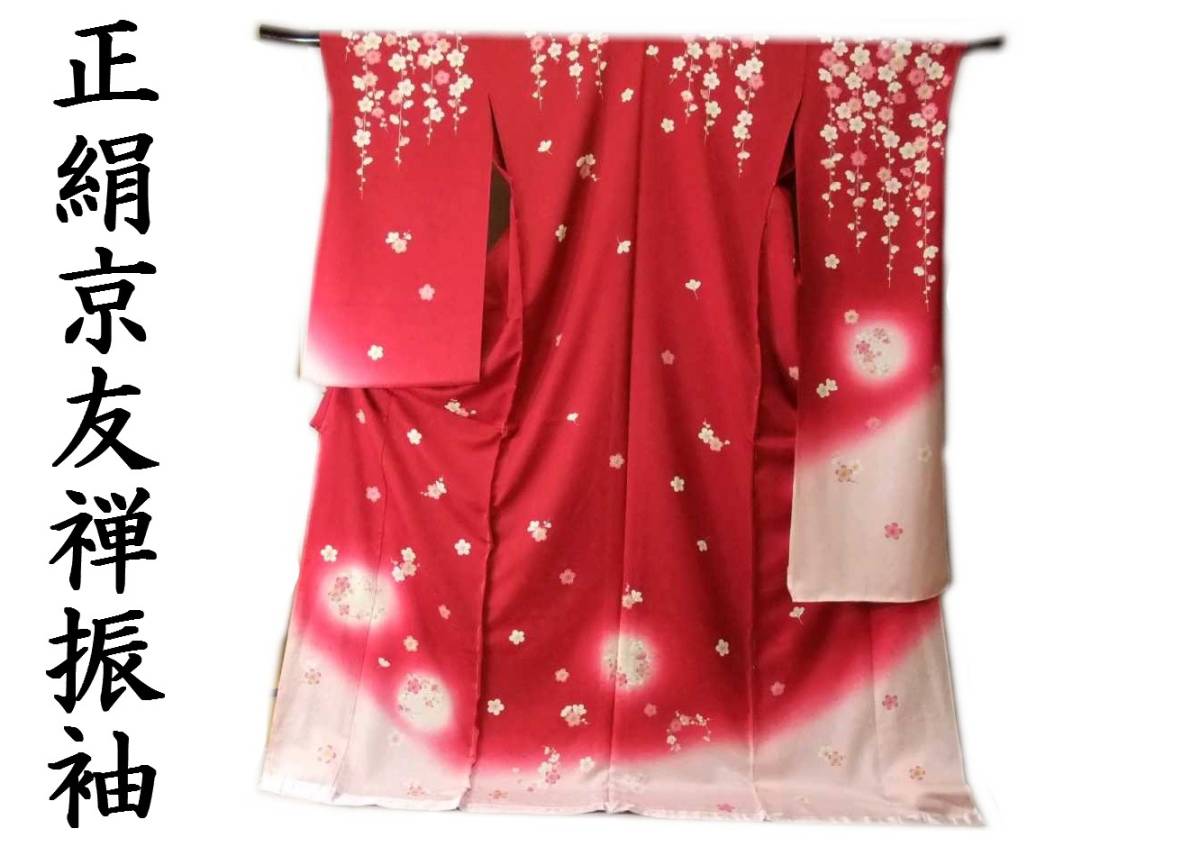振袖 正絹 hr087 京友禅 赤色地ぼかし梅花模様 新品 送料込み