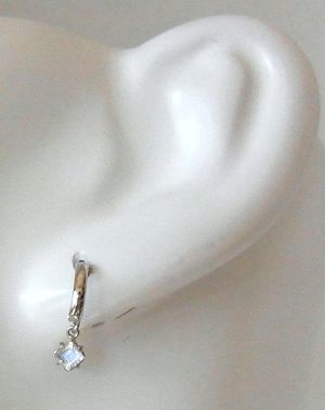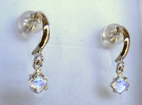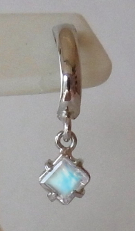 プラチナのパーツに、3.0ミリスクエアカットの天然ロイヤルブルームーンストーンを揺らしたピアスです。