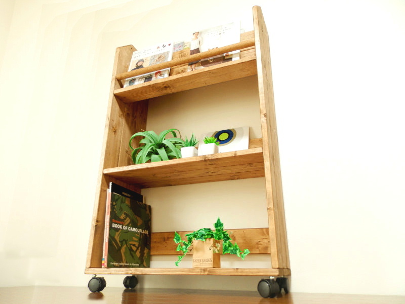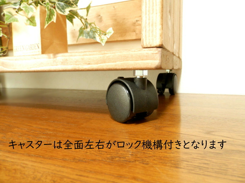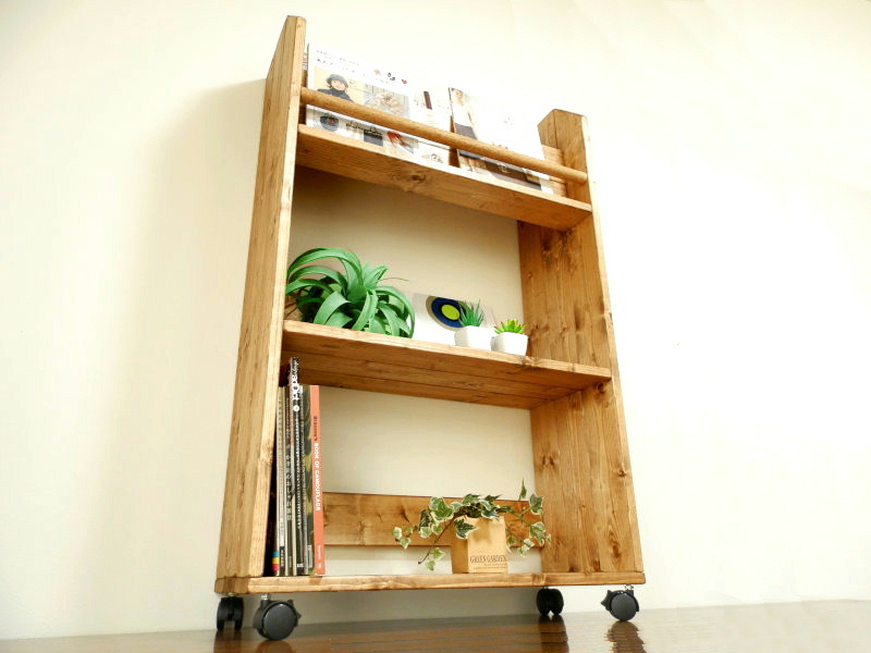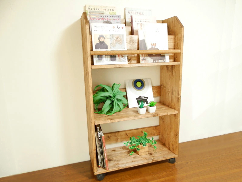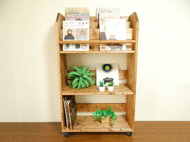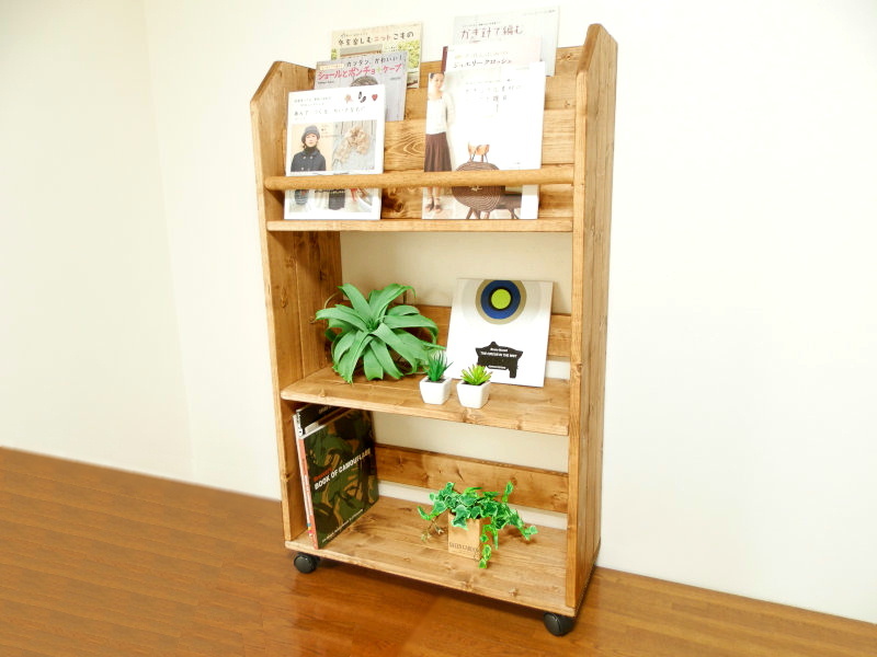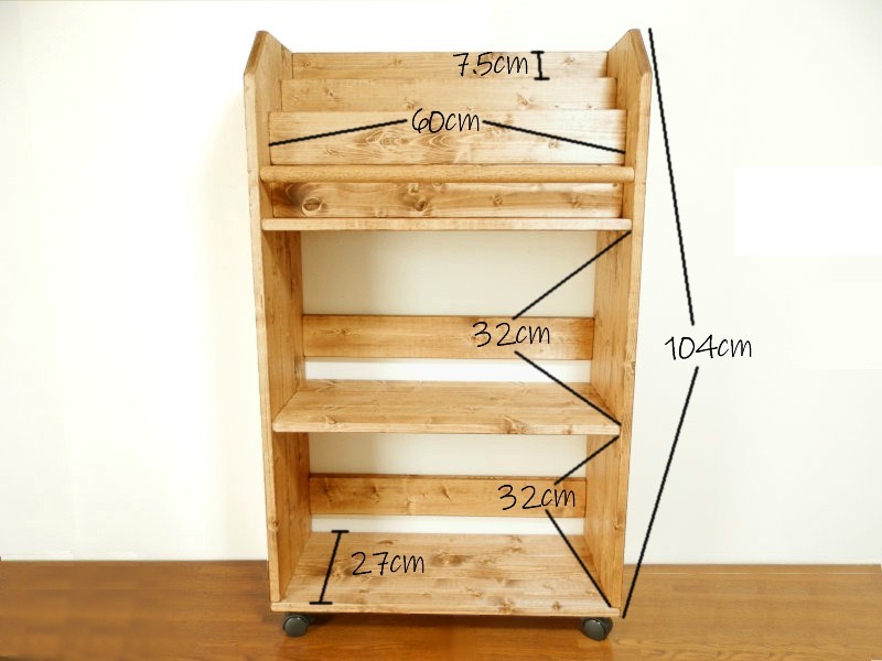 アンティーク風、カントリー風 雑誌&絵本ラックです サイズ、詳細は、 幅64cm(内寸60cm)×高さ104cm×奥行き27cm(下段、中段の高さ32cm) ※ネジ類は全て埋め込み加工し、見えなく仕上げております。 ※キャスターは全面左右がロック機構付きとなります 同梱発送について。 ・申し訳ありませんが こちらの商品は同梱発送に対応できません。 ※商品ラインナップは随時変更しておりますので 在庫が無くなり次第、再出品を行わない場合があります。 | ||||