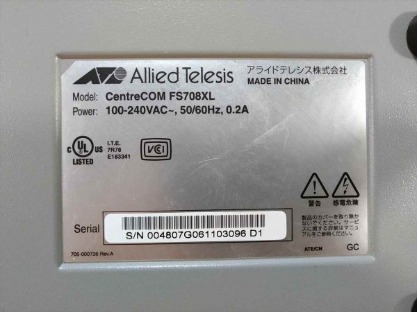 参考サイト: https://www.allied-telesis.co.jp/products/list/switch/fs708xl/catalog.html