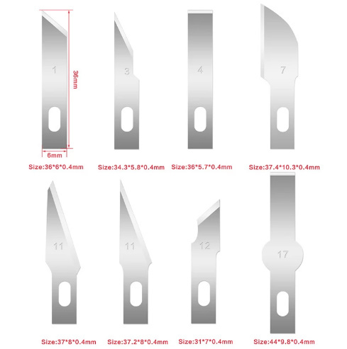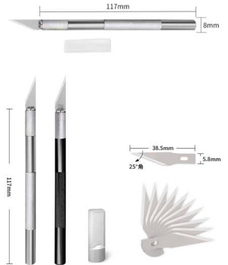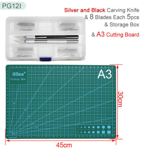 | 【商品説明】 製品: 彫刻ペンナイフとカットボード 彫刻ナイフ色:黒とシルバー まな板サイズ:A3 ブレード:8個 異なるスタイル 各5枚 アクセサリー:配信透明収納ボックス | ||