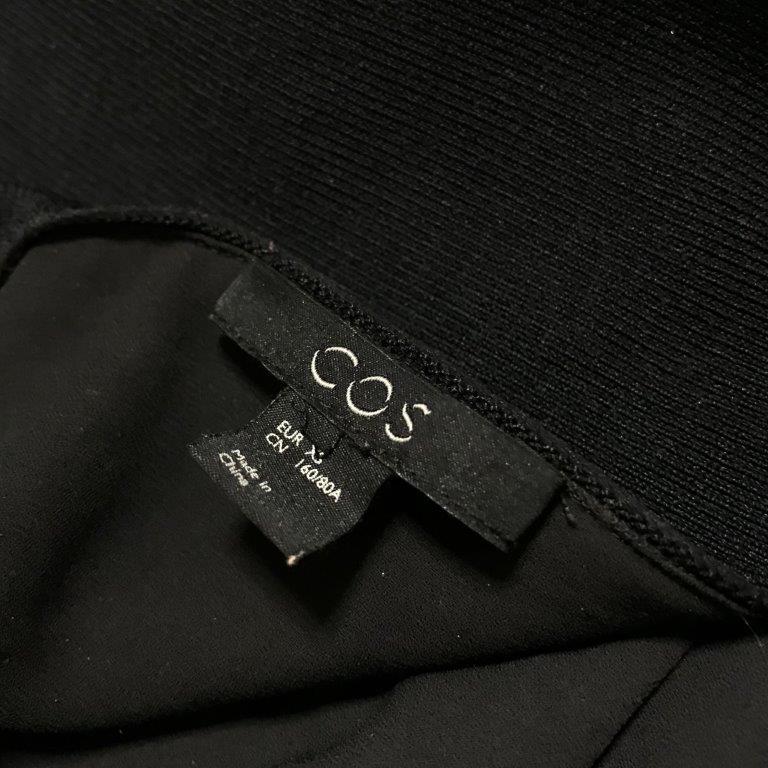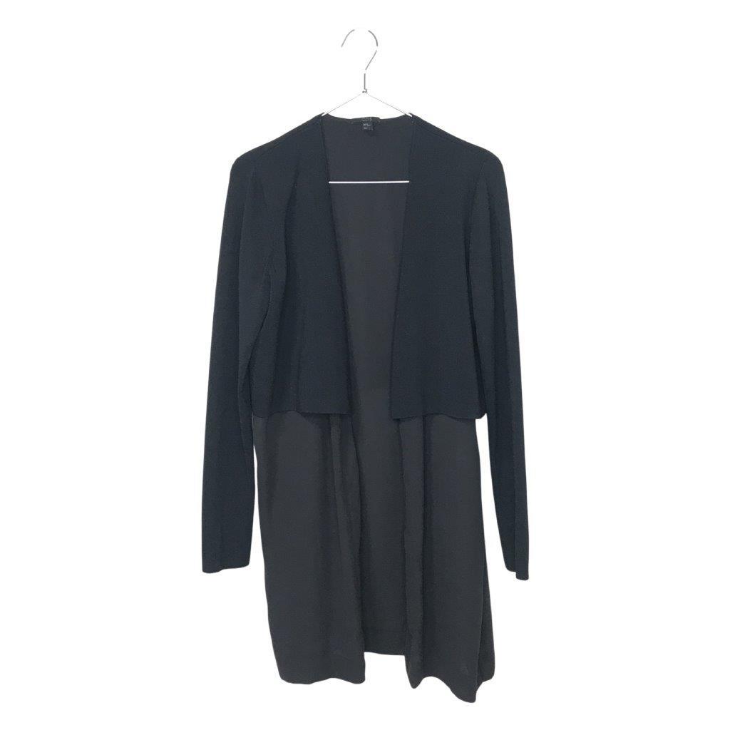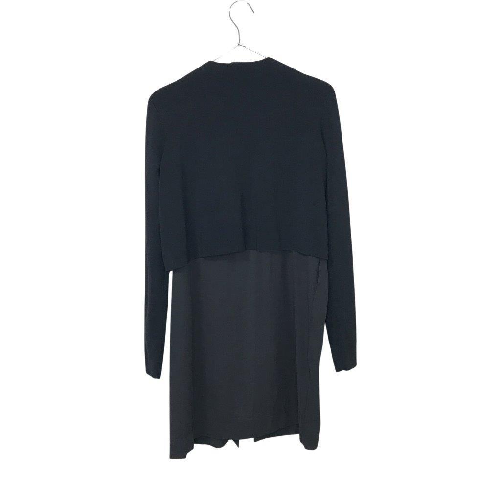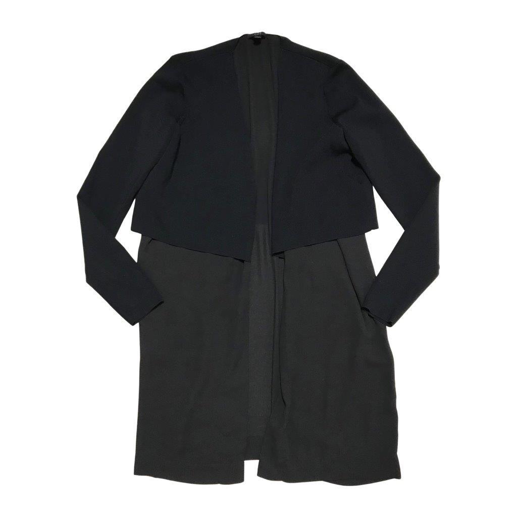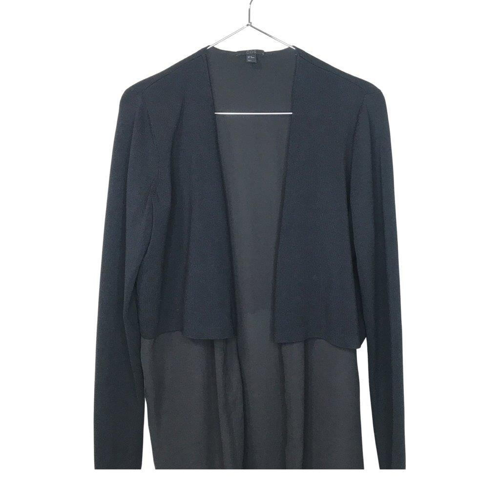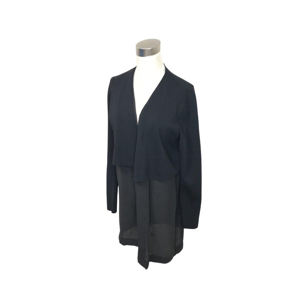 美品★COS/コス★レディース ポリエステル 切り替え レーヨン シースルー素材使い カーディガン 羽織 ジャケット 黒 ブラック XS 管:B:05