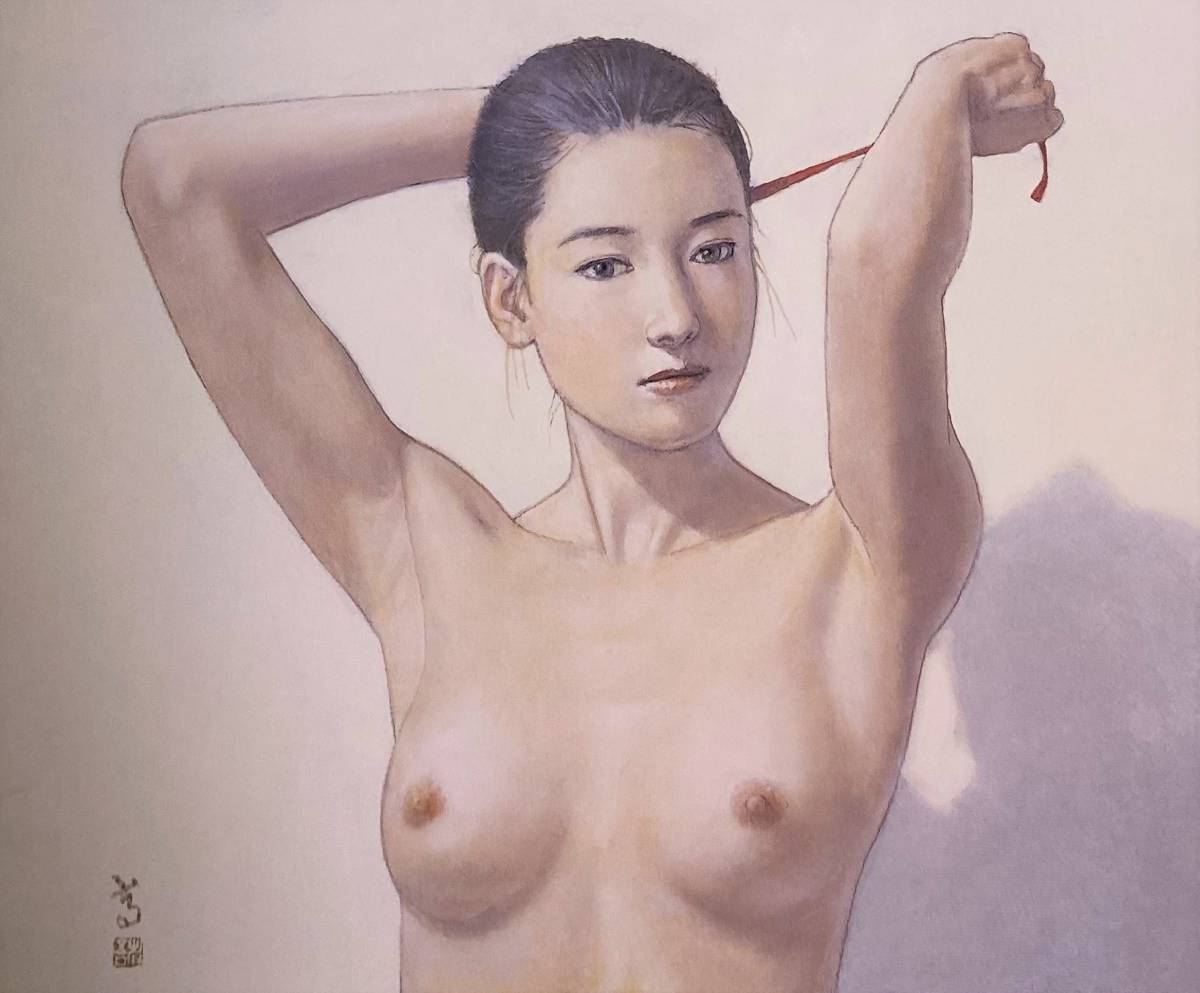 高塚省吾、〈赤い紐〉、希少な画集より、新品高級額、マット額装付、送料込み