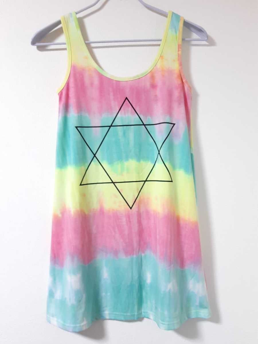 カラフル 派手奇抜個性的 タイダイタンクトップ ビッグオーバーサイズ 古着