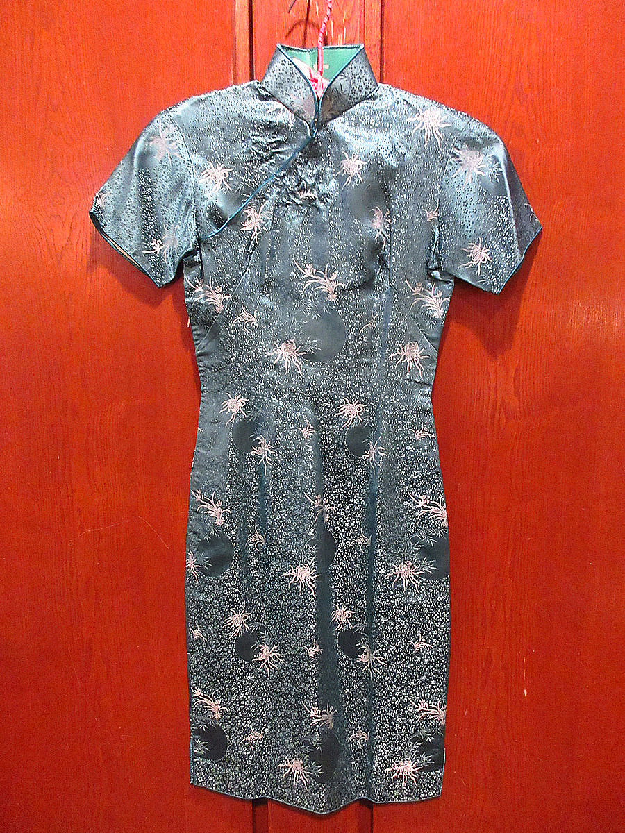 |   静岡県富士市にあるCOZY VINTAGEです。 海外から直接仕入れた古着、雑貨などを扱っています。 ホームページもございますので、そちらもチェックしてみてください。 https://www.used-cozy.com こちらの商品は佐川急便元払い60サイズです。 ◆サイズ◆ 肩幅・・・約38.5cm 身幅・・・約40.5cm 袖丈・・・約16cm ウエスト・・・約60cm 着丈・・・約96.5cm (計測箇所によって多少異なりますのでだいたいの目安としてお考えください。) ◆状態◆ 首元内側にシールの跡があります。 襟のパイピングに擦れがあります。 フロント下部の内側に約1cm程の汚れが2点程あります。 バック襟に約5mm程の汚れがあります。 バック上部に約1cm程の汚れがあります。 バック下部に数mm程の汚れがあります。 ダメージ、汚れが気になる方、神経質の方はご遠慮下さい。 ◆商品詳細◆ 素材は、化繊と思われるサテン地です。 色は、水色に近い色合いです。 フロントにスナップボタンが付いています。 右サイドに555ジッパーが付いています。 フロント首元にフックとスナップボタンが付いています。 裾の両サイドにスリットが入っています。 正確な年代が分かりませんが、1970年代以前の物かと思います。 花の刺繍(織柄)が入った素敵なチャイナドレスです。 210512s2-w-ssdrs ◆ビンテージ古着、レトロな雑貨などの卸もお気軽にご相談ください。 ◆info@used-cozy.comまでお気軽にメールくださいね!!  |